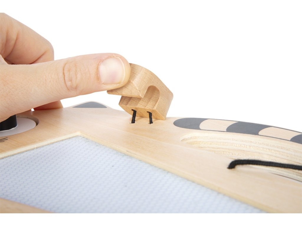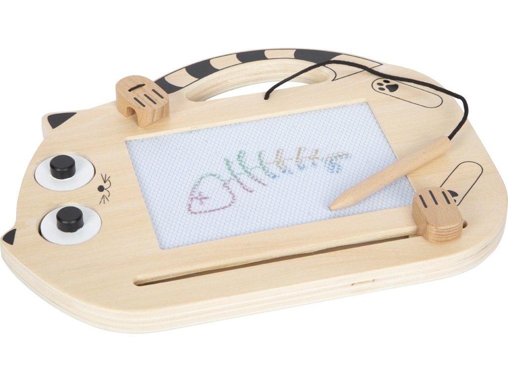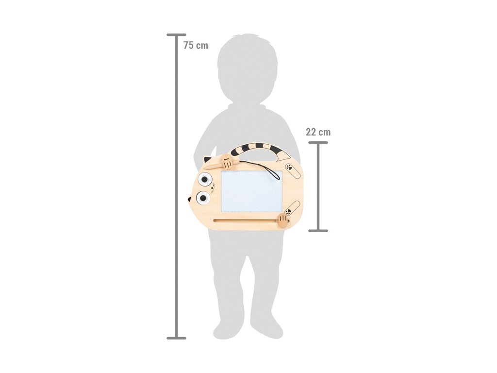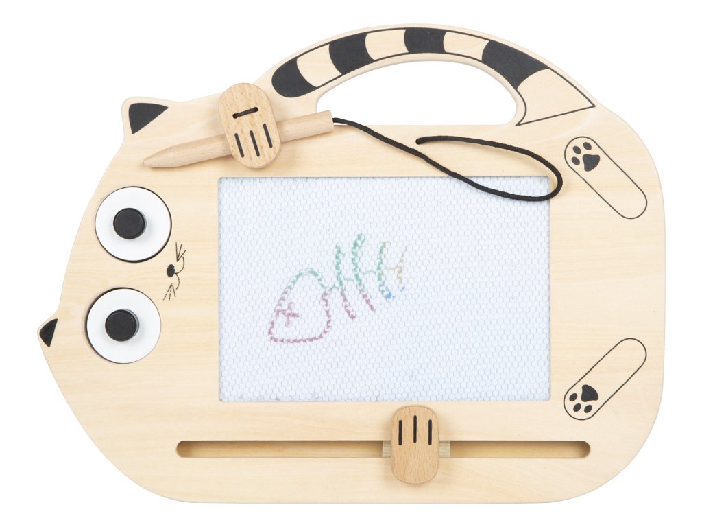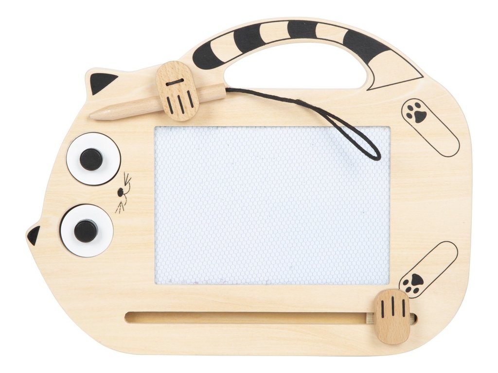 Kreativní zábava pro malé umělkyně a umělce! Magnetická kreslící tabulka ve tvaru kočky je ideální pro děti, které milují kreslení. Pomocí pera lze znovu a znovu vytvářet nové obrázky. Dvě razítka s motivy kočičích očí a kočičí hlavy nabízejí další možnosti vytváření jedinečných uměleckých děl. Když se pero nepoužívá, lze jej bezpečně upnout pod kočičí tlapku, a díky tomu, že je k tabulce připevněno šňůrkou, se neztratí. Když je mistrovské dílo dokončeno nebo chcete vytvořit něco nového, lze obraz jednoduše smazat pomocí posuvníku – takže je vše během chvilky připraveno pro další tvorbu! Díky integrovanému držadlu pro přenášení a kompaktním rozměrům lze tabulku vzít kamkoli. Užijte si kreativní zábavu, která nekončí ani na cestách! Hlavní vlastnosti: s dřevěným perem a 2 razítkypero na šňůrce k tabulce přichyceno tlapkounekonečné kreslení s magickou gumous držadlem pro přenášenívyrobeno z vysoce kvalitního dřevavhodné i na cesty