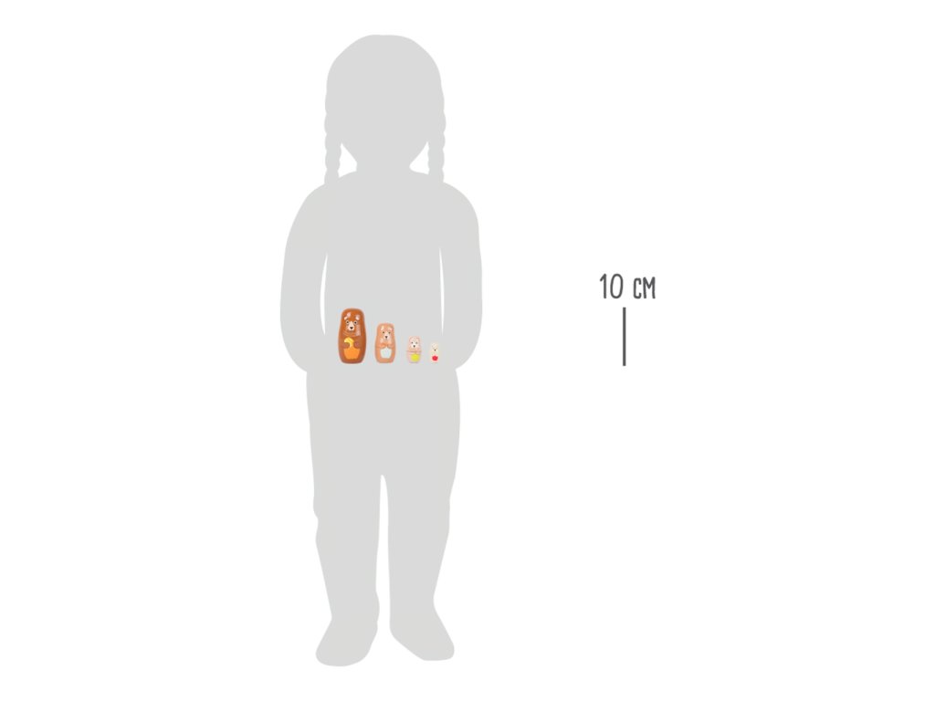 Čtyři láskyplně malované figurky Matrjošky v podobě medvědí rodiny. Menší medvídci se podle velikosti postupně schovávají do sebe. Tyto panenky se snadno uprostřed otevírají, což je skvělá praxe pro koordinaci ruka-oko a jemné motorické dovednosti. Figurky Matrjošky vyzařují své jedinečné kouzlo a jsou roztomilé na pohled - lákavý poutač s velkým studijním potenciálem pro Váš dětský pokoj! Hlavní vlastnosti: 4 figurky medvědí rodinkyrozvíjí koordinaci ruka-oko a jemné motorické dovenosti
