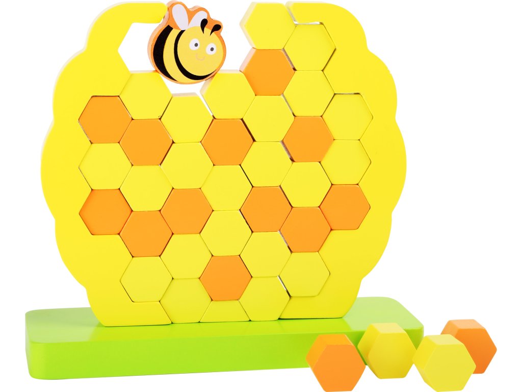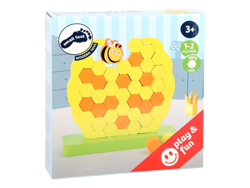 Včelka je umístěna na horní hraně úlu. Postupně vytahujeme dřevěné buńky tak, aby včelka nespadla. Komu se podaří ji nejdéle v příbytku udržet? Hlavní vlastnosti: hra pro 1-2 hráčerozvíjí jemnou motoriku dětí