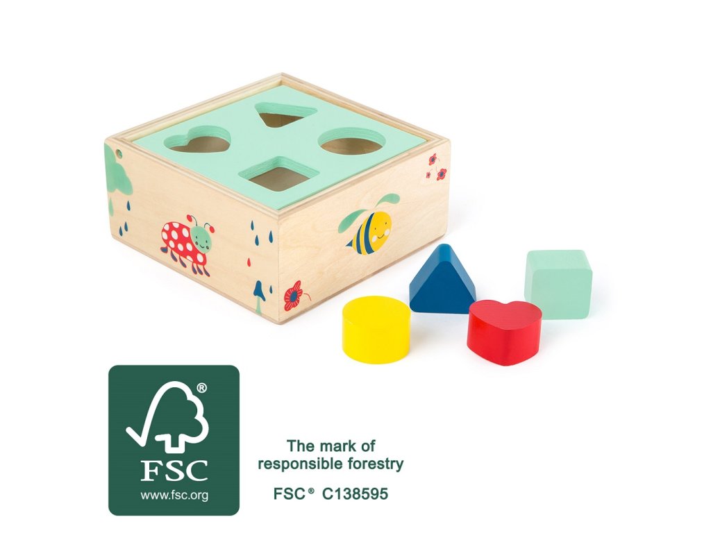 Tvary a barvy, o těch se děti mohou naučit zábavnou formou! Motorická vkládačka je vyrobena ze 100% FSC® dřeva, víčko lze jednoduše otevřít a zavřít, tvary tak nemusíte složitě vytahovat. Na stranách vkládačky je potisk zvědavých zvířátek z lesů a luk. Hračka má kombinaci přírodního a barevného dřeva, je velmi instinktivní. Hlavní vlastnosti: 4 barevné tvary pro vkládání100% FSC® dřevomotorická hračka Značka a certifikát FSC® (Forest Stewardship Council) zaručuje, že dřevo, ze kterého byl produkt vyroben, nebylo vytěženo nelegálně a pochází z lesů obhospodařovaných šetrným či přírodě blízkým způsobem, ve kterém jsou dodržovány přísné environmentální a sociální požadavky. Značka FSC® na výrobku znamená, že svým nákupem pomáháte chránit lesy a podporujete šetrné, odpovědné či přírodě blízké hospodaření, díky kterému jsou naše lesy stabilnější, zdravější, mají přirozenou druhovou skladbu a lépe odolávají negativním následkům klimatických změn.