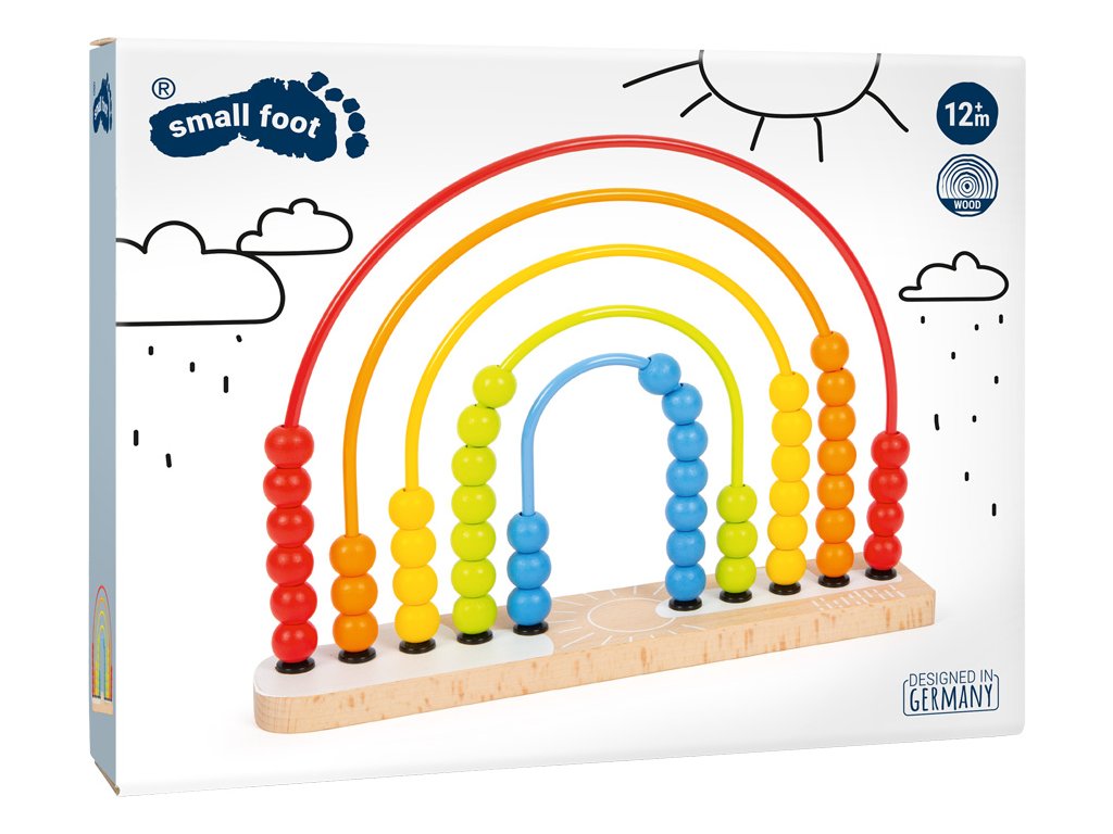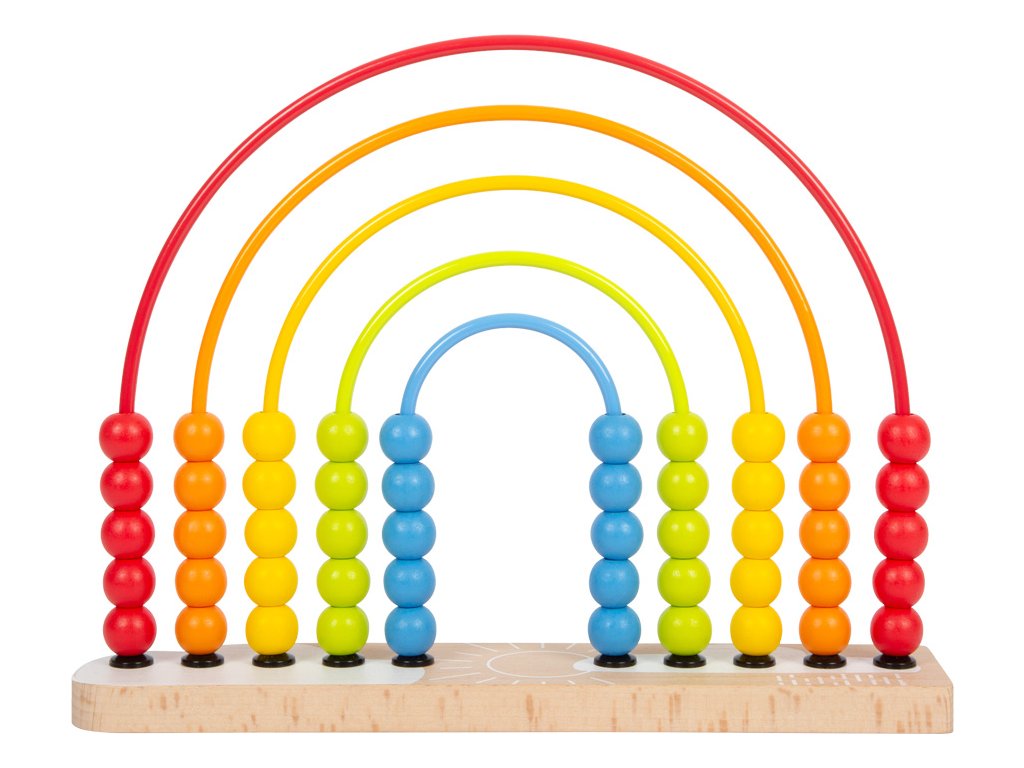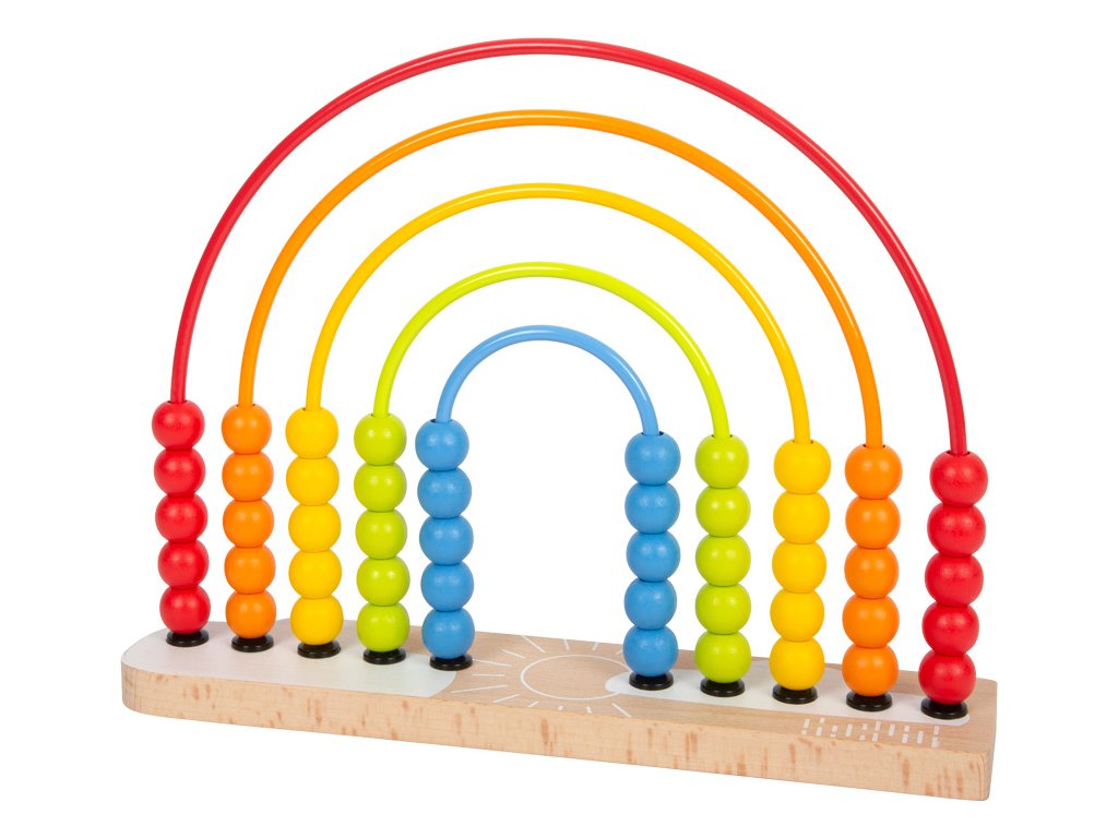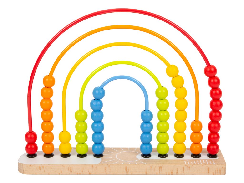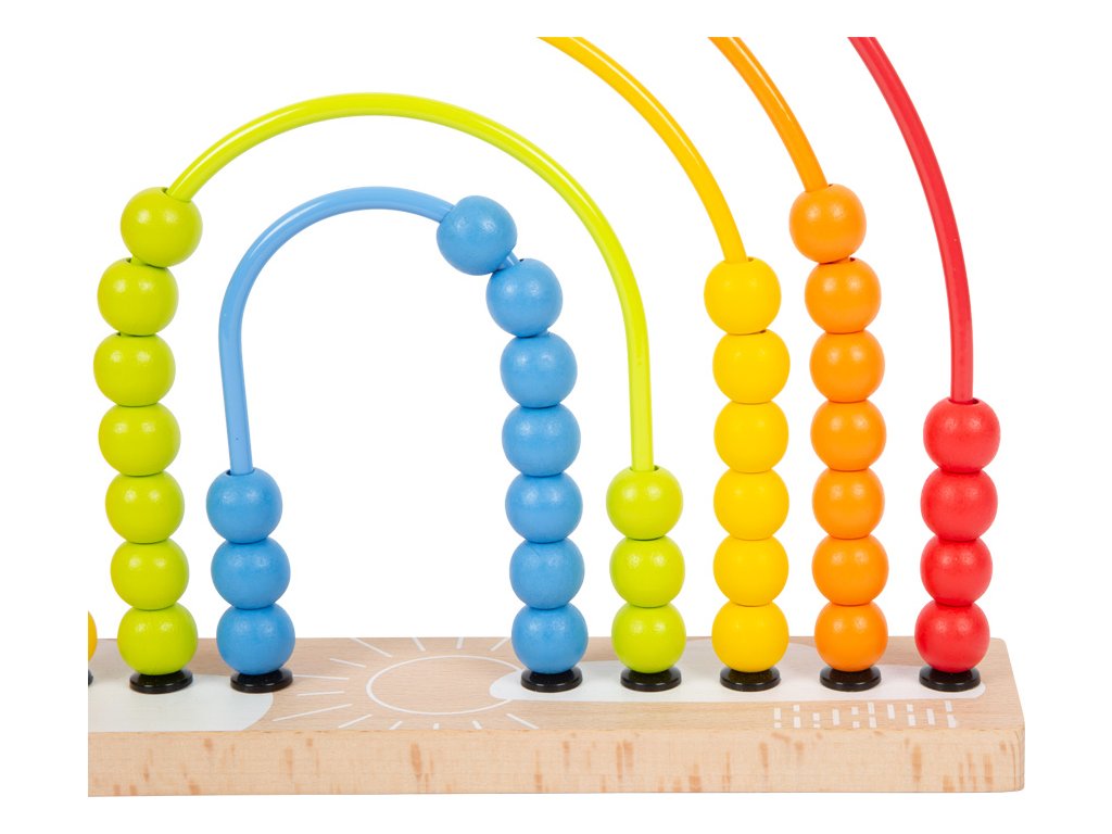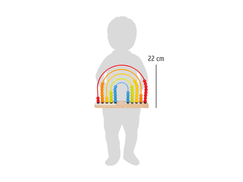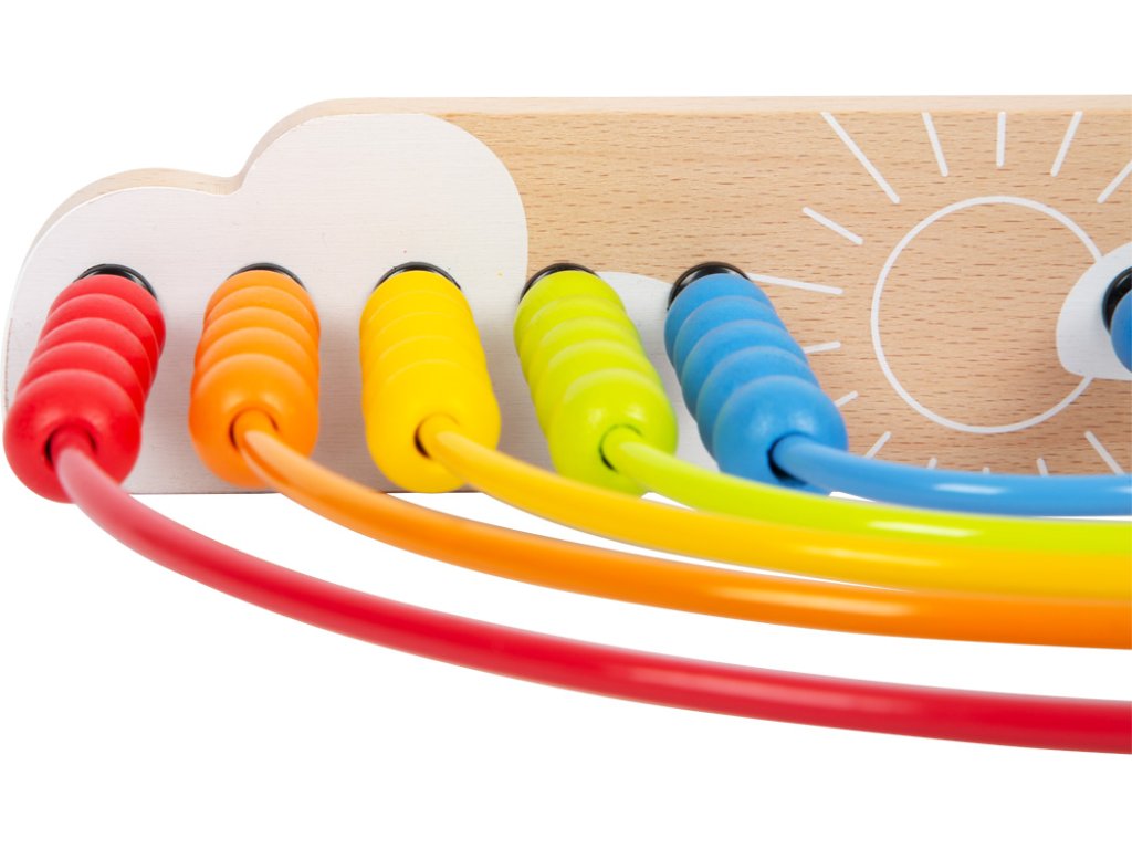 Korálkový labyrint v pestrých barvách duhy. Hračka, která je příjemná na dotyk, má atraktivní tvar a barvu. 50 barevných korálků nabádá děti ke hře a učení. Posouvání korálků trénuje klešťový úchop, motoriku, děti také porozumí počtům a množství. Stabilní dřevěná základna, 2v1 - naučná hračka i dekorace. Perfektní, pokud vlastníte i jiné hračky v duhovém stylu. Hlavní vlastnosti: Trénuje motoriku50 korálků na 5 smyčkáchPestré barvy duhy