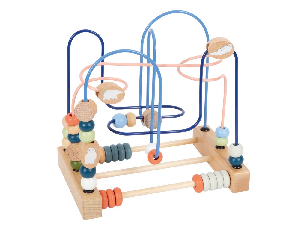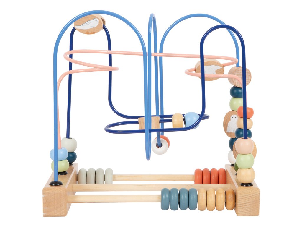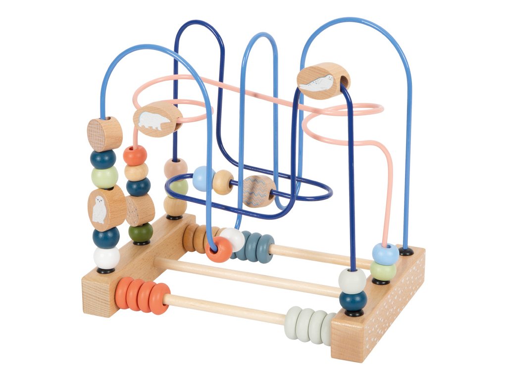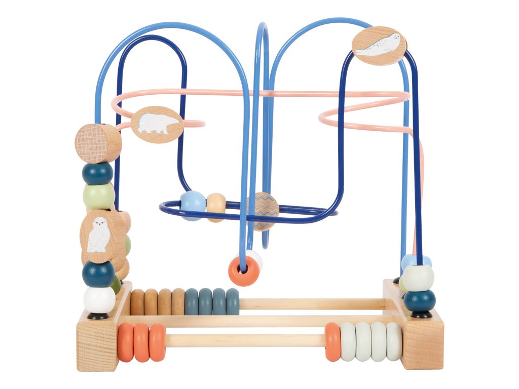 Motorická zábava v Arktidě! Tato motorická hračka vyrobená z certifikovaného dřeva FSC® nabízí dlouhotrvající zábavu, když jsou dřevěné korálky a posuvné prvky s ilustracemi ledního medvěda, tuleně a sovy sněžné vedeny po třech barevně sladěných, propletených kovových drahách. Zábavnou formou si tak děti procvičí jemnou motoriku a koordinaci ruka-oko. Počítadla s kroužky nabízejí rozmanitost a podporují zájem o počítání zábavnou formou. Labyrint v moderních barvách podporuje motorický vývoj dětí a působí skvělým vizuálním dojmem v dětském pokoji. S řadou motorických hraček "Arctic" je to všechno o šesti zvířecích kamarádech a jejich životě v mrazivém arktickém prostředí...majestátní lední medvěd, hravý mrož, zvědavý tuleň, hbitý zajíc sněžný, bílá sova sněžná a chytrá polární liška. Všichni tito obyvatelé Arktidy mají své charakteristické bílé kožíšky a jsou obzvláště populární a oblíbené u malých dětí. Labyrint pomáhá dětem seznamovat se nejen s barvami, ale také především trénovat jemnou motoriku při posouvání korálků. Díky dostatečnému množství těchto rozmanitých korálků, mezi kterými najdete roztomilé zvířecí kamarády, lze hračku využít i k edukativní hře a pomalu u vašich ratolestí vytvářet pozitivní vztah k učení a počtům. Hlavní vlastnosti: skvělý úvod do světa počtůrozvíjí jemnou motorikuzlepšuje obratnost a koncentraciFSC® dřevo Značka a certifikát FSC® (Forest Stewardship Council) zaručuje, že dřevo, ze kterého byl produkt vyroben, nebylo vytěženo nelegálně a pochází z lesů obhospodařovaných šetrným či přírodě blízkým způsobem, ve kterém jsou dodržovány přísné environmentální a sociální požadavky. Značka FSC® na výrobku znamená, že svým nákupem pomáháte chránit lesy a podporujete šetrné, odpovědné či přírodě blízké hospodaření, díky kterému jsou naše lesy stabilnější, zdravější, mají přirozenou druhovou skladbu a lépe odolávají negativním následkům klimatických změn.