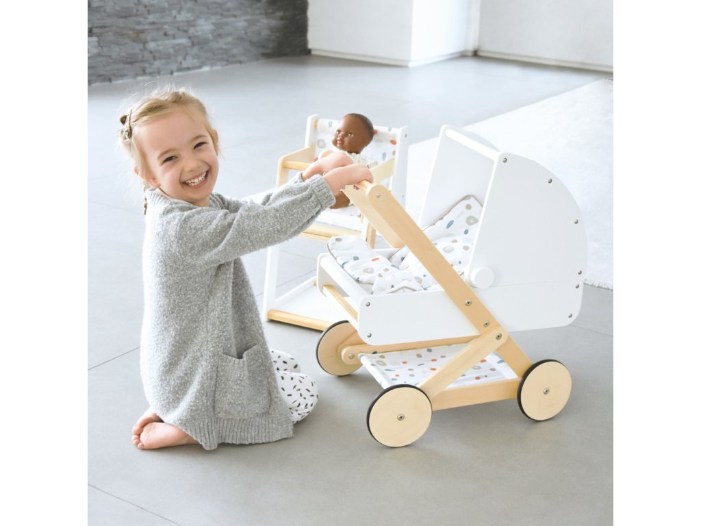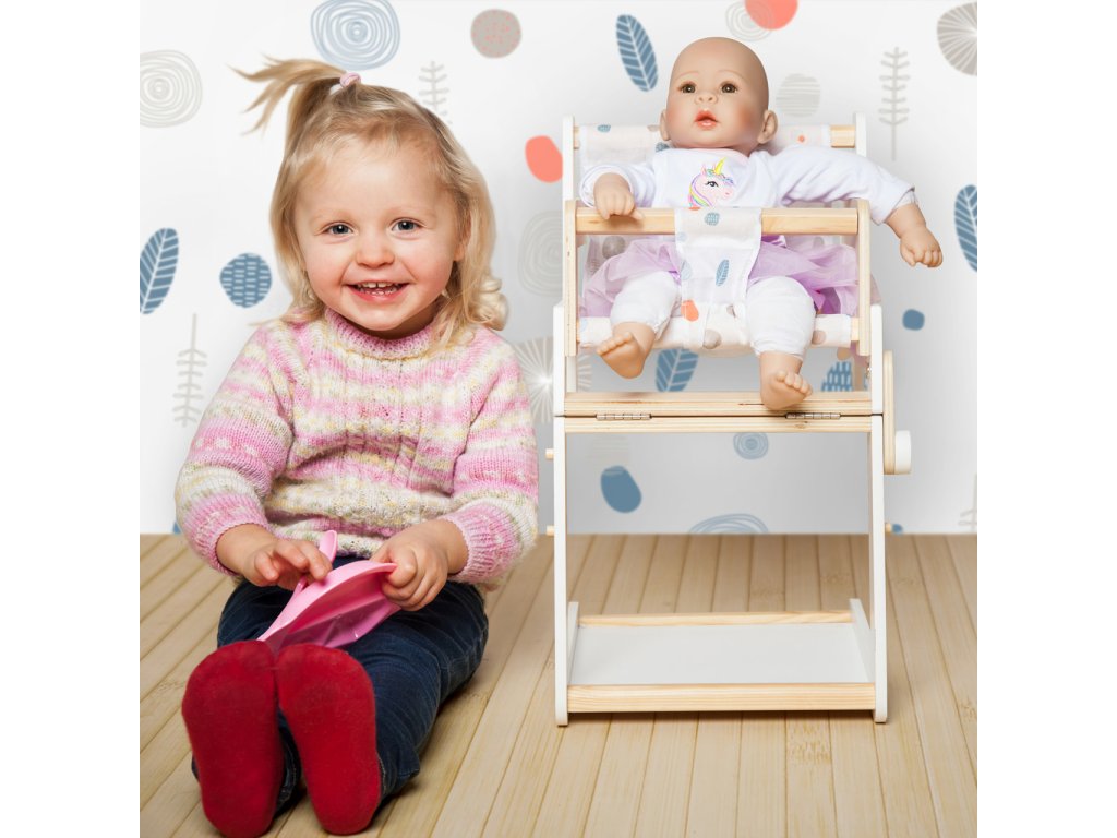 Multifunkční vysoká židlička pro panenky, která jistě nadchne mladší i starší „rodiče“ panenek. Má jednoduchý skandinávský design, je vyrobena z kvalitních materiálů. Jen pár pohybů rukou a vysoká židle může být přeměněna v židličku se stolem. Je vhodná pro panenky a plyšáky do ~46 cm. Díky jednoduchému designu se hodí do každého interiéru. Je viditelně dřevěná a má zaoblené hrany. Hlavní vlastnosti Skandinávský designPro panenky a plyšáky do 46 cmZaoblené hrany Little Button Řada atraktivního příslušenství pro panenky Little Button nabízí pestrou paletu výrobků, od kočárku přes jídelní židličku až po skříň. Zákazníky snadno zaujmou jednotným funkčním a decentním designem využívajícím přímé linie a střídmé neutrální barvy. Díky tomu spolu mohou vytvořit ucelené harmonické soupravy, které vkusně doplní moderní interiér. Důmyslná konstrukce a kvalitní zpracování pomáhají zajistit vysokou stabilitu, bezpečnost a dlouhou životnost. Založte s jejich pomocí stylový koutek pro panenky, kde mohou Vaše děti rozvíjet svou fantazii a pečovatelské dovednosti.
