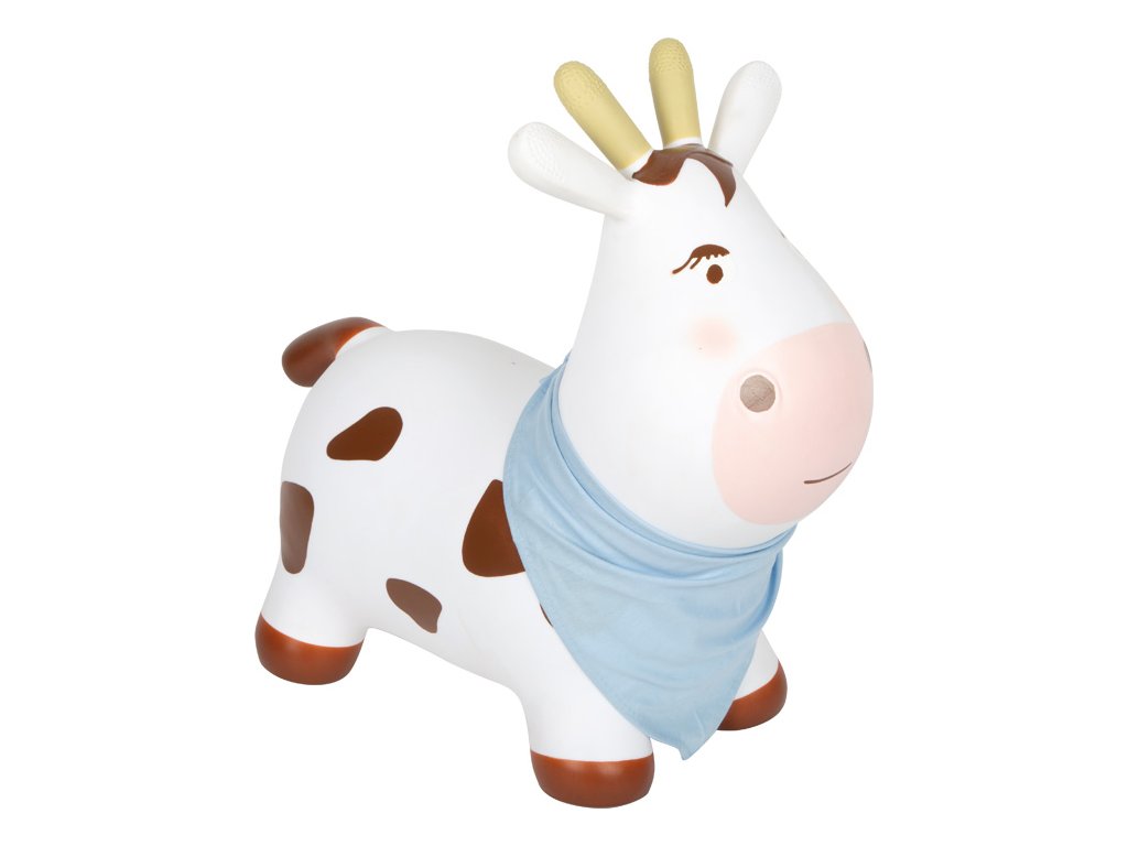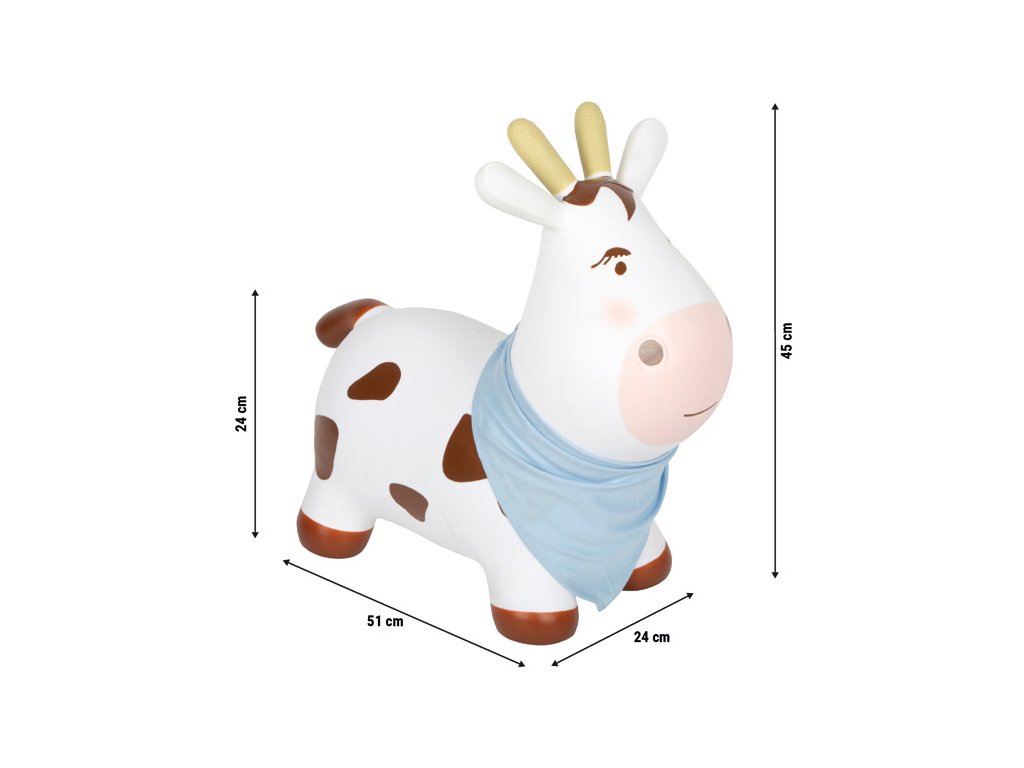 Roztomilé nafukovací skákací zvířátko ve tvaru roztomilé kravičky přináší dětem spoustu pohybu a zábavy doma i venku. Díky svému milému designu a měkkému bavlněnému šátku si ho děti okamžitě zamilují.Zvířátko má praktické uchopitelné uši, které zajišťují bezpečné držení při skákání. Je vyrobeno z odolného, snadno omyvatelného materiálu. Součástí balení je pumpička pro jednoduché nafouknutí.S nosností až 50 kg a výškou sedáku přibližně 24 cm je ideální pro menší děti, které si chtějí užít aktivní pohyb. Skákací kravička zároveň pomáhá rozvíjet svaly zad, trupu a nohou a trénuje rovnováhu a koordinaci. Hlavní vlastnosti: nafukovací skákací zvířátko ve tvaru kravičkyvhodné pro vnitřní i venkovní použitísoučástí balení je nafukovací hopsadlo, bavlněný šátek a pumpičkauchopitelné uši pro bezpečné držení při skákánívyrobeno z odolného, snadno čistitelného materiálunosnost až 50 kgvýška sedáku cca 24 cmpomáhá rozvíjet svaly zad, trupu a nohoutrénuje rovnováhu a koordinaci pohybů