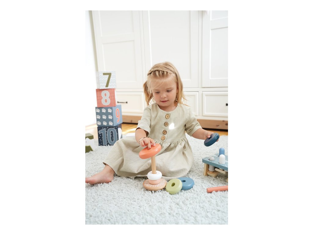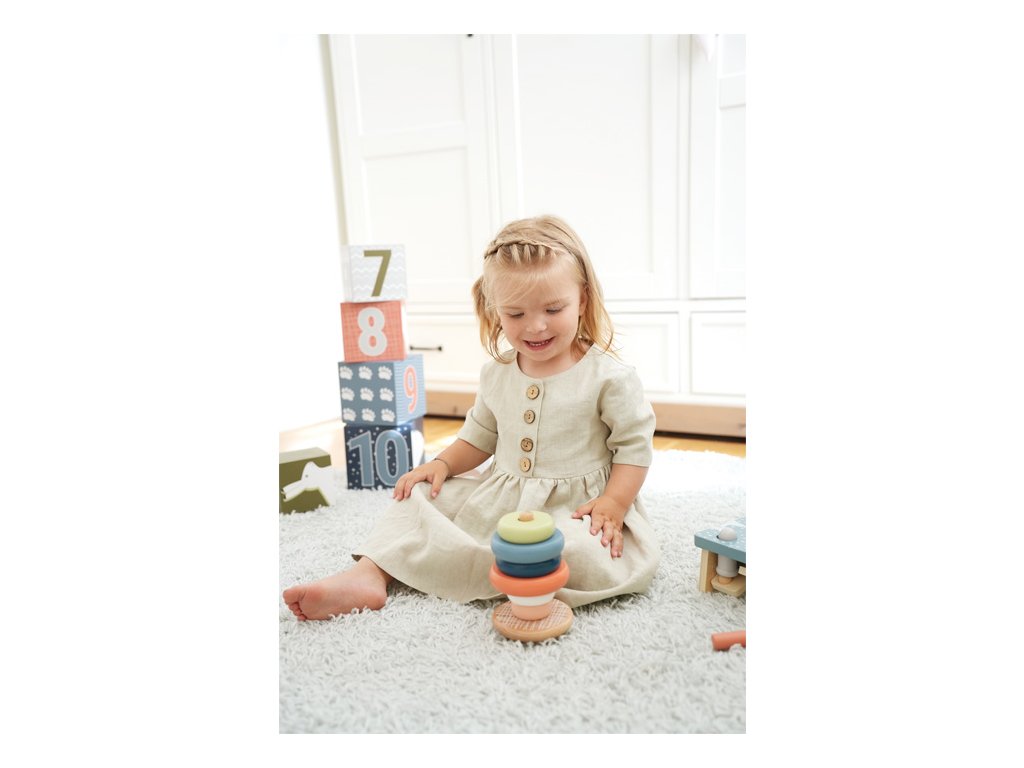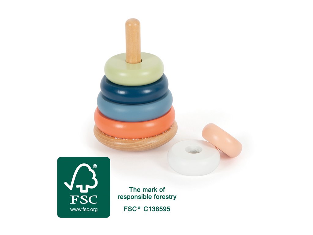 Zábava při nasazování s arktickou atmosférou. Tato nasazovací věž z certifikovaného dřeva FSC® motivuje i ty nejmenší děti, aby třídily šest různě barevných kroužků podle velikosti a skládaly je na sebe. Tato aktivita trénuje motorické dovednosti, koordinaci ruka-oko a poskytuje pochopení barev a velikostí. Zaoblená základna umožňuje, aby se nasazovací věž kývala tam a zpět, což zábavným způsobem zpochybňuje dětskou zručnost. Pohyblivý kolík zvyšuje bezpečnost. Tato klasická motorická hračka vhodná pro děti vyrobená z robustního dřeva je navržena v moderních, ale jemných barvách a zaručuje dlouhotrvající zábavu při hraní. Dřevo hladké na dotek dopřeje dětem příjemný haptický zážitek. Malé děti se nebudou vůbec nudit! Hlavní vlastnosti: rozvíjí jemnou motoriku dítěteklasická hračka v moderním barevném provedenívyrobeno z 100% FSC® dřeva Značka a certifikát FSC® (Forest Stewardship Council) zaručuje, že dřevo, ze kterého byl produkt vyroben, nebylo vytěženo nelegálně a pochází z lesů obhospodařovaných šetrným či přírodě blízkým způsobem, ve kterém jsou dodržovány přísné environmentální a sociální požadavky. Značka FSC® na výrobku znamená, že svým nákupem pomáháte chránit lesy a podporujete šetrné, odpovědné či přírodě blízké hospodaření, díky kterému jsou naše lesy stabilnější, zdravější, mají přirozenou druhovou skladbu a lépe odolávají negativním následkům klimatických změn.