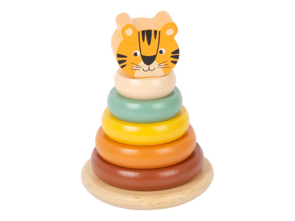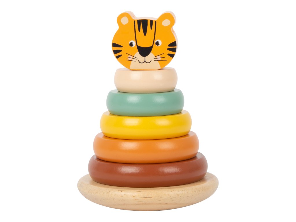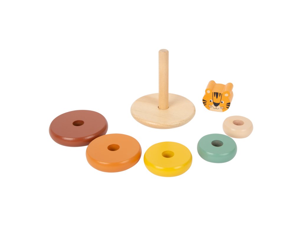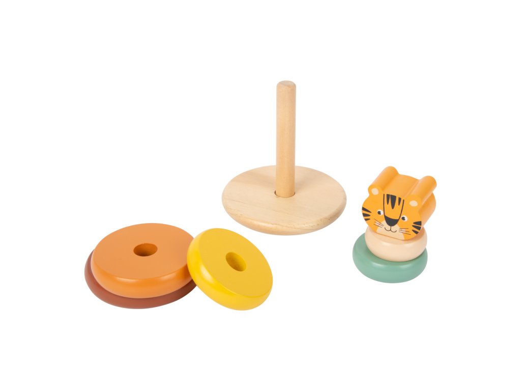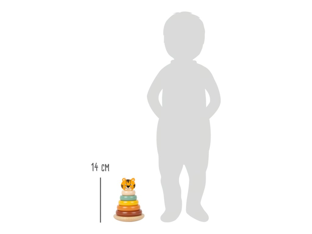 Nasazovací věž nebo rozviklaná pyramida? Obojí! Tento přátelský tygr se ukáže v plné kráse jakmile děti poskládají všechny dřevěné kroužky na sebe ve správném pořadí. Nasazovací zvířátko o 7 kusech trénuje koordinaci ruka-oko, také porozumění tvarům a velikostem. Rozviklaná věž, která je vzdělávací hračkou pro děti. Motorická hra v moderních barvách vyrobená z robustního dřeva. Hlavní vlastnosti: pastelové barvyzákladna a 6 dílů