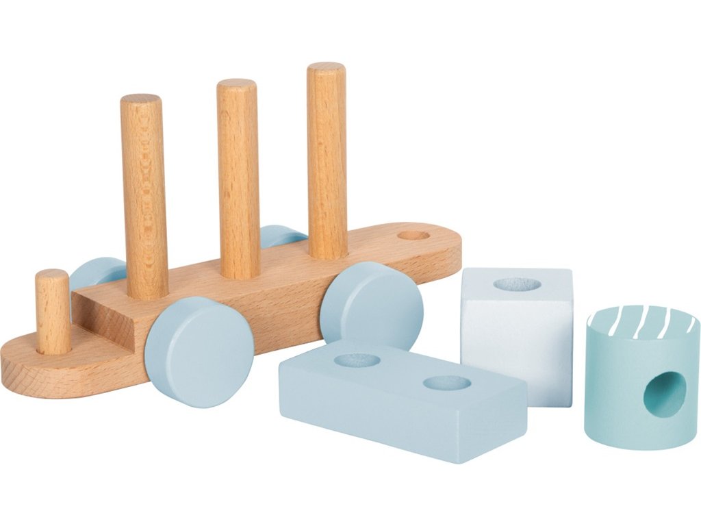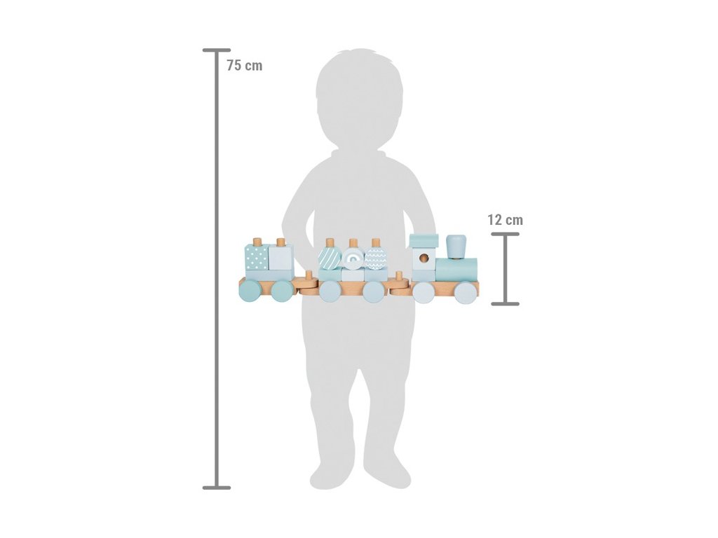 Dřevěný vláček v pastelových barvách s jemnými motivy nadchne každé malé dítě! Lokomotiva se dvěma vagónky a 14 barevně sladěnými stavebními dílky zve ke skládání, stavění i volné hře. Kostky se nasazují na dřevěné tyčky, a rozvíjejí tak jemnou motoriku i koordinaci pohybů. Jednotlivé dílky lze navíc libovolně kombinovat a používat i samostatně jako dřevěné kostky – ideální pro malé stavitele s velkou fantazií. Jemné barvy v kombinaci s přírodními tóny dřeva dělají z tohoto vláčku nejen zábavnou hračku, ale také krásnou dekoraci do dětského pokoje. Skvělý dárek pro jakoukoliv příležitost! Hlavní vlastnosti: 1 lokomotiva, 2 vagónky, 14 nasazovacích kostekpodněcuje kreativiturozvíjí jemnou motoriku a koordinaci ruka-okovyrobeno z kvalitního, pevného dřevajemné barvy a moderní designkrásná dekorace i originální dárekvhodné pro děti od 12 měsíců