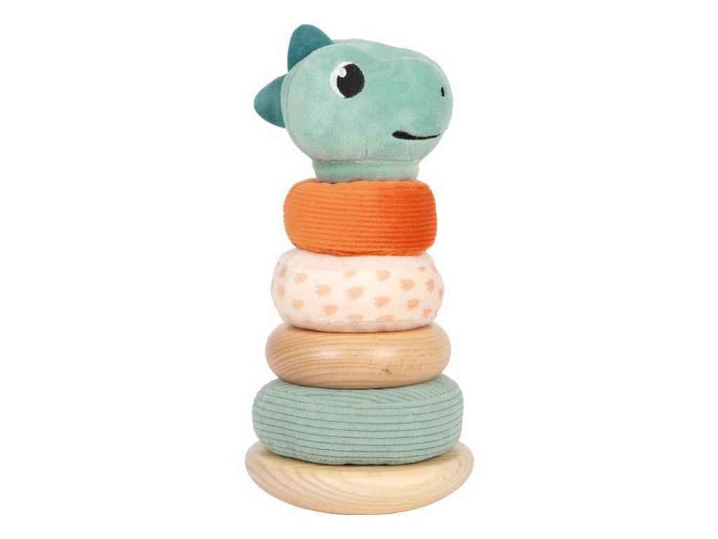 Se stohovací věží v designu barevného dinosaura bude trénink motorických dovedností zábavným a hravým zážitkem! Motorická hračka zaujme malé fanoušky dinosaurů kombinací plyše a dřeva. Trénuje koordinaci ruka-oko a jemnou motoriku, ale také oživí interiér dětského pokoje. Zábavná kolébající se věž se čtyřmi barevnými kroužky, bezpečnou pohyblivou centrální tyčí a usměvavou hlavou dinosaura pomůže dětem při rozpoznávání velikostí a barev. Základna věže je zaoblená, 3 kroužky jsou vyrobeny z látek různých vzorů, barev a textur a 1 kroužek ze dřeva. Tématem produktové řady "Dino" jsou fascinující prehistoričtí tvorové, kteří upoutají pozornost lidí všech věkových kategorií. Tyto hračky podporují rozvoj motorických dovedností, inspirují dětskou kreativitu a představivost a povzbuzují děti, aby se dozvěděly více o přírodě a historii těchto pravěkých obrů. Hlavní vlastnosti: 3 měkké látkové kroužky, 1 dřevěný kroužek, 1 dinosauří hlavapohyblivá centrální tyčpodporuje rozpoznávání barev a velikostítrénuje motoriku a koordinaci ruka-okosoučást produktové řady Dino