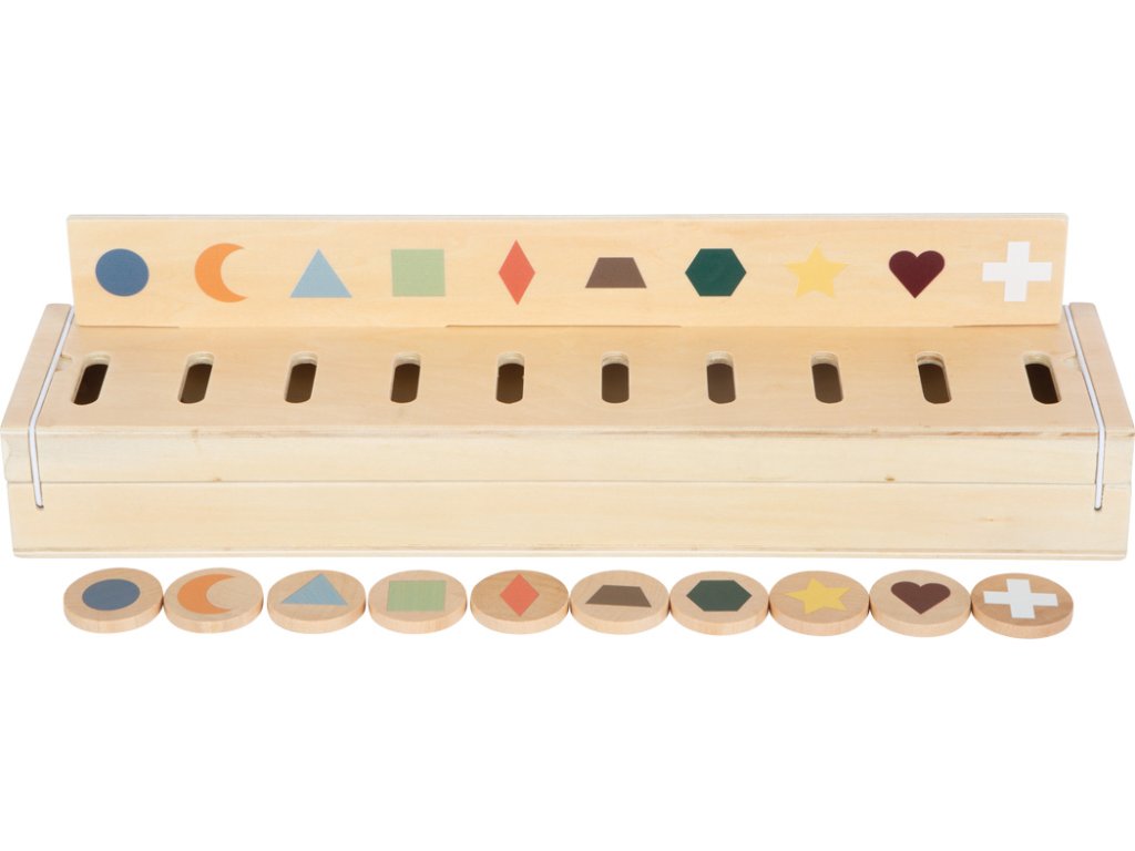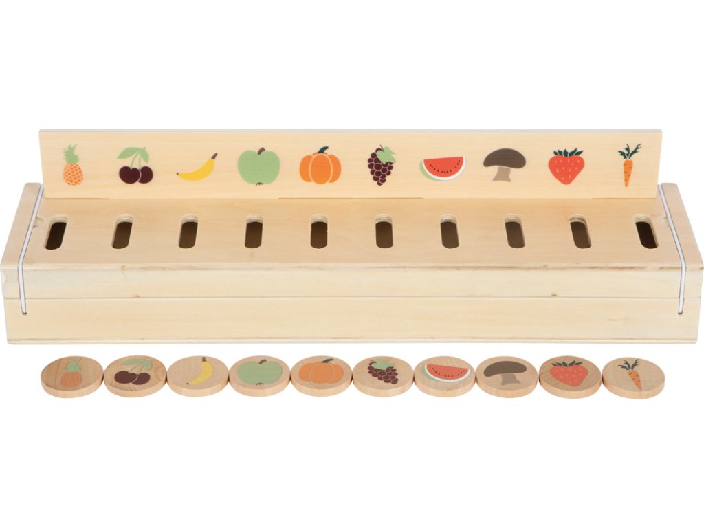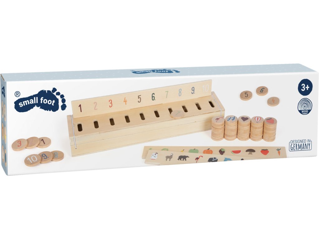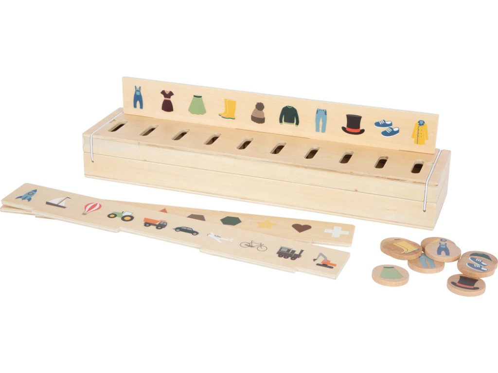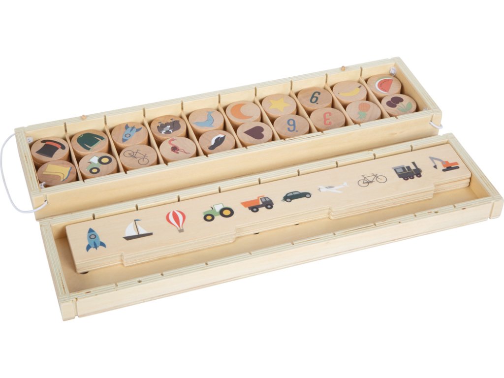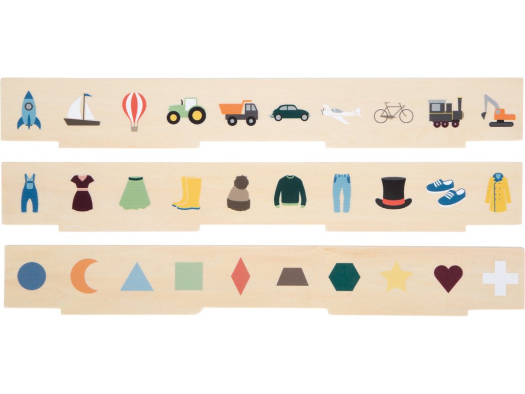 Tento dřevěný zásobník nabízí spoustu motivů k objevování se třemi oboustrannými vkládacími panely a 60 ks obrázkových žetonů na téma doprava, zvířata, čísla, tvary, oblečení, ovoce a zelenina. Při třídění a vkládání žetonu do krabičky si děti trénují jemnou motoriku, rozpoznávání barev a tvarů zábavným způsobem. Motivy lze také využít k učení slov a zdokonalování slovní zásoby zábavnou formou. Deset samostatných přihrádek uvnitř dřevěného zásobníku a dvě západky na gumičku zajišťují bezpečné uložení obsahu. Praktická učební hračka vhodná i když jste na cestách. Hlavní vlastnosti: tři oboustranné obrazové panelymožnost uložit do uzavíratelného zásobníkuučební hračka vhodná i na cestyrozpoznávání barev a tvarů zábavným způsobemrozšíření slovní zásoby