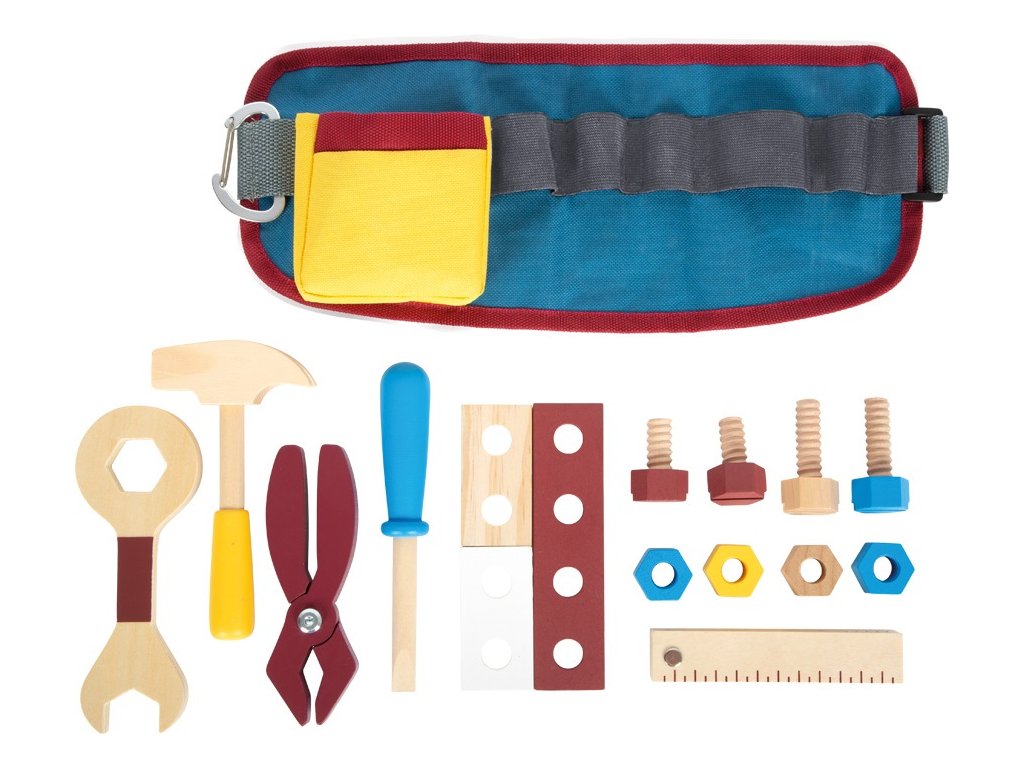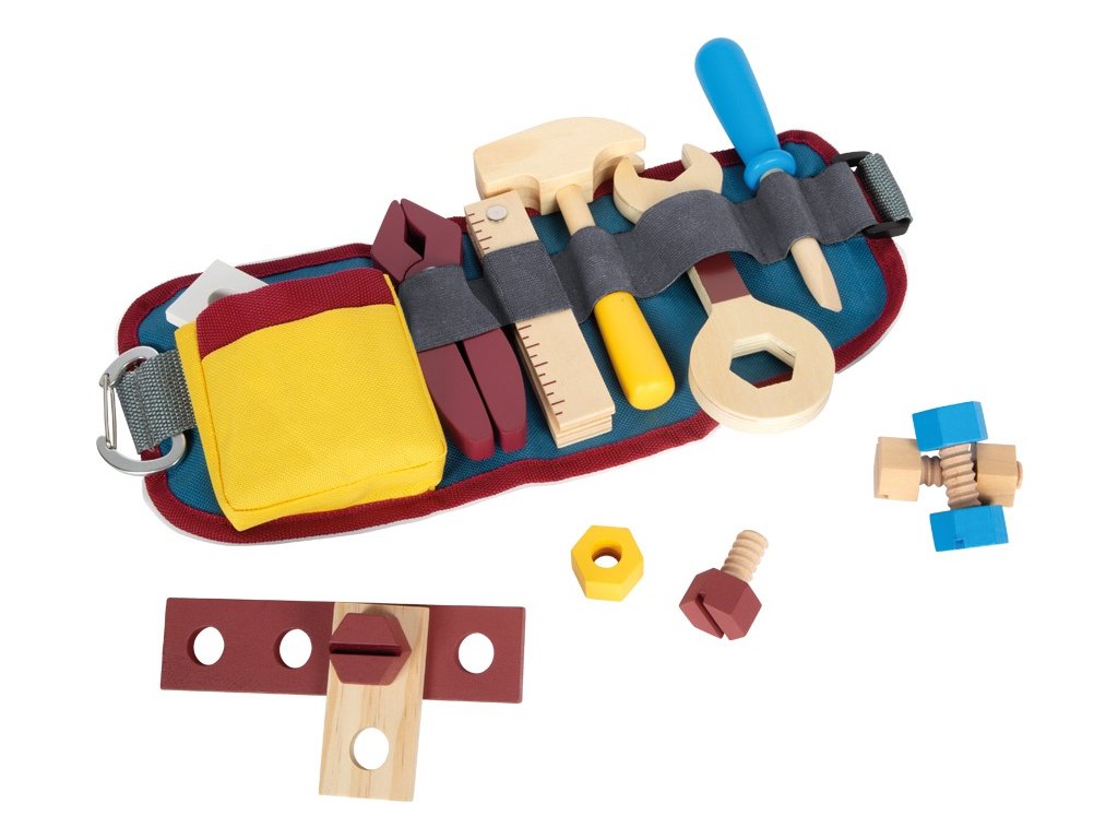 Je potřeba něco opravit nebo vylepšit? S tímto opaskem na nářadí s praktickou zacvakávací karabinou budou děti vždy připraveny. Malí kutilové budou mít své nářadí ihned po ruce! Opasek má nastavitelnou délku, obsahuje poutka různých velikostí, do kterých jednoduše zaháknete veškeré přiložené nářadí. Ideální také na cesty. Balení obsahuje: pás na nářadí, šroubovák, klíč, kladivo, kleště, skládací metr, velkou perforovanou destičku, 2 malé perforované destičky, 2 malé šrouby, 2 velké šrouby, 4 matice, karabinu. Skvěle se hodí k dalším výrobkům z produktové řady Workshop, ale také Nordic a Miniwob. Opasek s nářadím a bohatým příslušenstvím dokoná proměnu Vašeho malého kutila v opravdového řemeslníka. Hlavní vlastnosti: praktický opasek na nářadí s nastavitelným popruhem a bohatým příslušenstvímrobustní a odolné provedenítrénuje jemnou motoriku a soustředěníkompatibilní z produkty řady Nordic, Miniwob