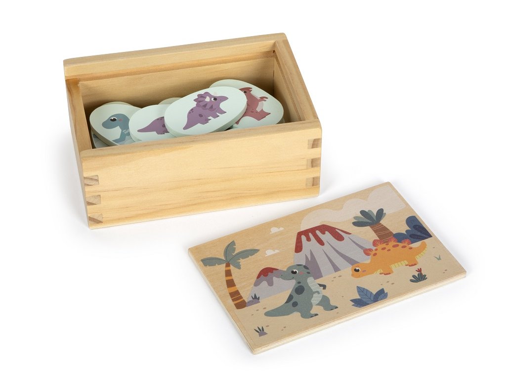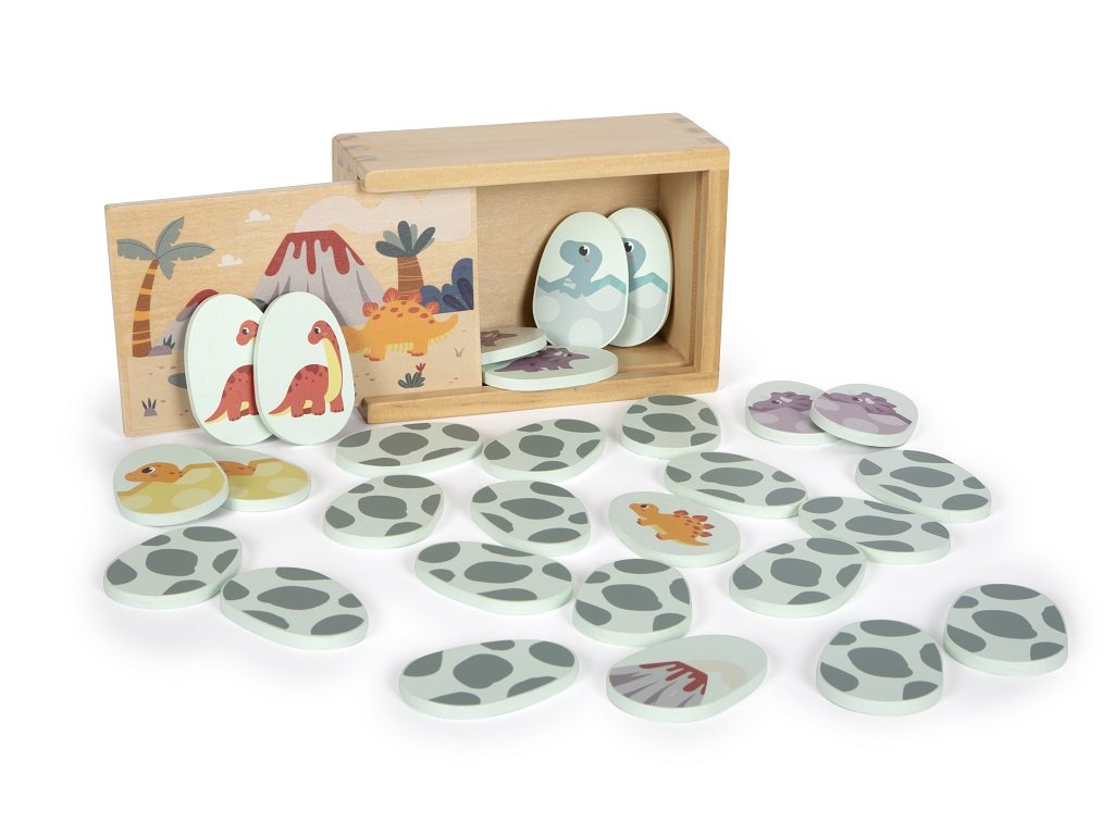 Tato klasická hra v kompaktním formátu jistě přinese dlouhotrvající herní zábavu fanouškům dinosaurů všech věkových kategorií. Ponořte se do dobrodružného světa prehistorické éry. Pexeso v roztomilém motivu dinosauřích vajec je společenská hra pro celou rodinu. Procvičujte své paměťové schopnosti a najděte všech 14 párů odpovídajících obrázků. Tuto společenskou hru lze snadno uložit a přepravovat v krabičce s posouvatelným víkem. Hra je tak vhodná i na cesty. Pexeso je vyrobeno ze 100% certifikovaného dřeva FSC®. S hračkami z produktové řady "Dino" jsou tématem fascinující prehistoričtí tvorové, kteří upoutají pozornost lidí všech věkových kategorií. Tyto dřevěné hračky podporují rozvoj motorických dovedností, inspirují dětskou kreativitu a představivost a povzbuzují děti, aby se dozvěděly více o přírodě a historii těchto pravěkých obrů. Hlavní vlastnosti: klasická hra v zajímavém Dino motivuvhodné pro 2-4 hráčeideální na cesty14 párů obrázkových vajectrénuje koncentraci a paměť zábavnou formoukvalitní a milá ilustrace Značka a certifikát FSC® (Forest Stewardship Council) zaručuje, že dřevo, ze kterého byl produkt vyroben, nebylo vytěženo nelegálně a pochází z lesů obhospodařovaných šetrným či přírodě blízkým způsobem, ve kterém jsou dodržovány přísné environmentální a sociální požadavky. Značka FSC® na výrobku znamená, že svým nákupem pomáháte chránit lesy a podporujete šetrné, odpovědné či přírodě blízké hospodaření, díky kterému jsou naše lesy stabilnější, zdravější, mají přirozenou druhovou skladbu a lépe odolávají negativním následkům klimatických změn.