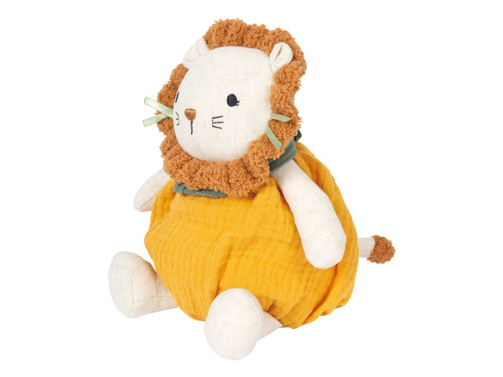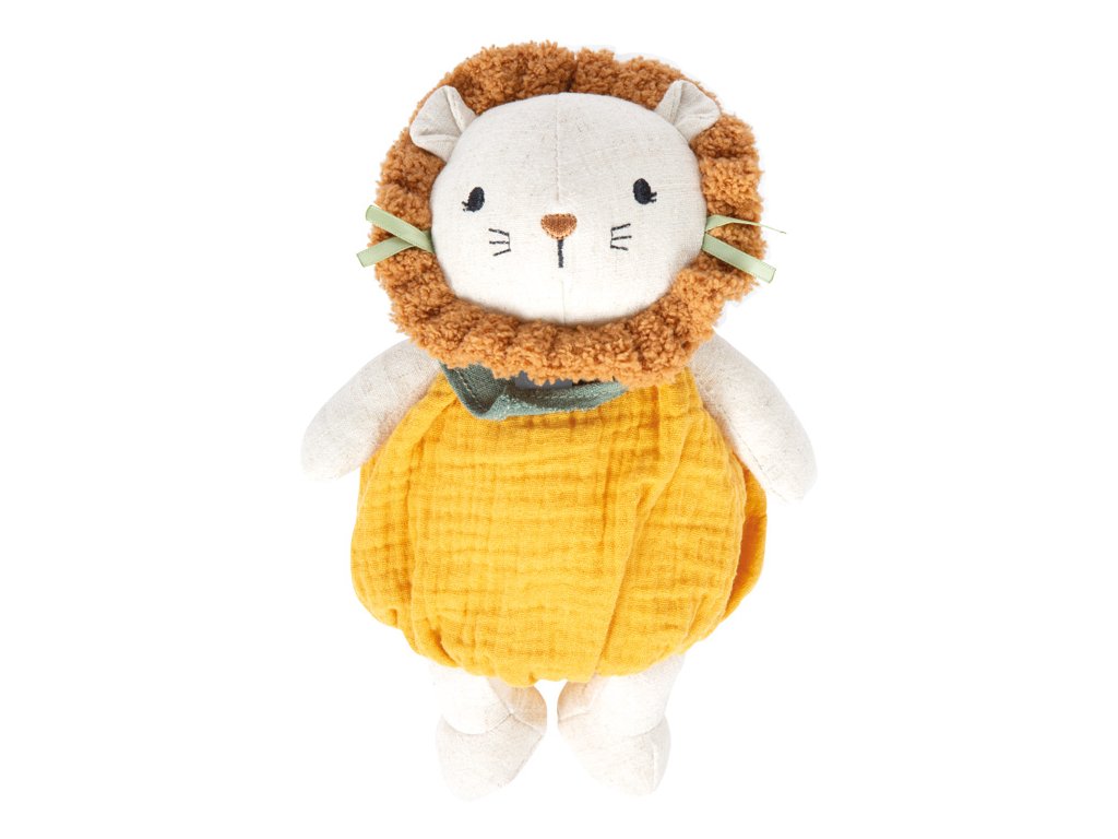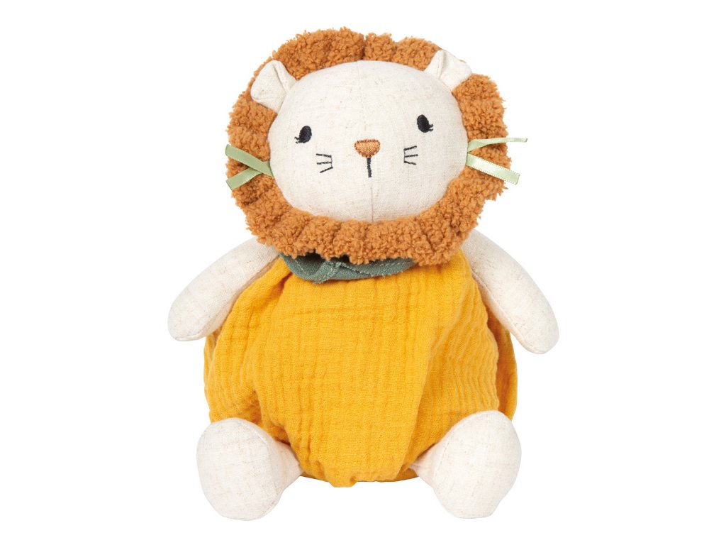 Stvořeno k mazlení!Tento roztomilý plyšový Lvíček je ideálním prvním kamarádem pro miminka a batolata. Hebký povrch, měkce polstrované tělo a dětem přizpůsobený design poskytují pocit bezpečí a pohodlí a zároveň podporují hravé objevování světa. Texturovaná mušelínová látka nabízí dětem zajímavý povrch, který láká k dotýkání, uchopování a přirozeně podporuje rozvoj smyslů i jemné motoriky. Ať už v postýlce, kočárku nebo na cestách, lví plyšák je vždy nablízku. Díky svému měkkému, polstrovanému provedení a příjemnému materiálu se plyšový Lvíček rychle stane oblíbeným společníkem v prvních měsících života dítěte. Kombinuje uklidňující mazlení s možnostmi smyslového vnímání a svou kompaktní velikostí skvěle padne do dětských ruček. Tato měkká hračka poskytuje pocit blízkosti, jistoty a stává se známým prvkem každodenních rituálů. Ideální pro hraní i jako promyšlený dárek pro nejmenší. Hlavní vlastnosti: měkká plyšová hračka pro miminka s motivem lvaideální velikost pro malé dětské ručičkyrozvíjí jemnou motoriku, představivost a kreativní hranívyrobeno z mušelínu a látky s příjemnou texturoupodporuje uchopení, dotýkání a první smyslové zážitkyvhodné od narození