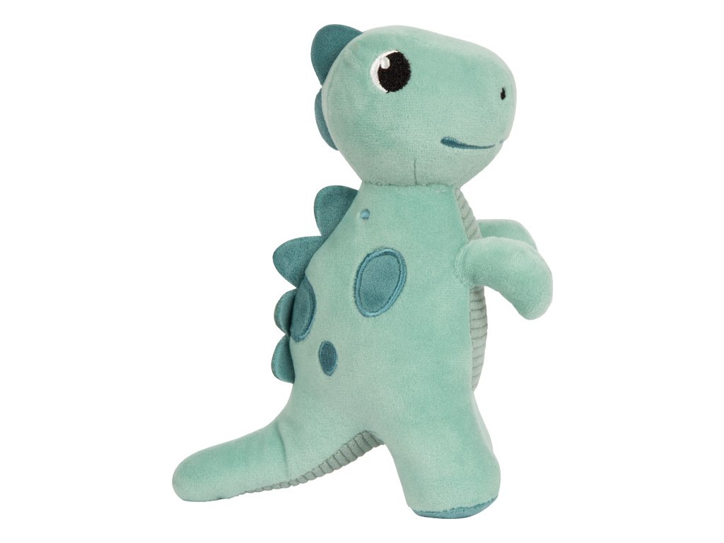 Tento roztomilý plyšový T. rex je hebký plyšový kamarád, který může Vaše dítě doprovázet po celé dětství. Miminka i větší děti se budou cítit v bezpečí, když se přitulí k měkkému a jemnému povrchu plyšového dinosaura. Strukturované manšestrové bříško povzbuzuje malé ručičky k dotýkání a zkoumání. Ať už je společníkem při usínání v postýlce nebo kočárku či kamarád na hraní, udělá radost všem malým milovníkům prehistorických obrů. Díky různým strukturám látky a pestrému barevnému provedení je příjemný na dotek i vizuálně působivý a podporuje rozvoj smyslového vnímání. Tématem produktové řady "Dino" jsou fascinující prehistoričtí tvorové, kteří upoutají pozornost lidí všech věkových kategorií. Tyto hračky podporují rozvoj motorických dovedností, inspirují dětskou kreativitu a představivost a povzbuzují děti, aby se dozvěděly více o přírodě a historii těchto pravěkých obrů. Hlavní vlastnosti: měkký a příjemný povrch, různé texturypodporuje rozvoj smyslového vnímáníideální velikost pro malé ručičkyvhodné od narození
