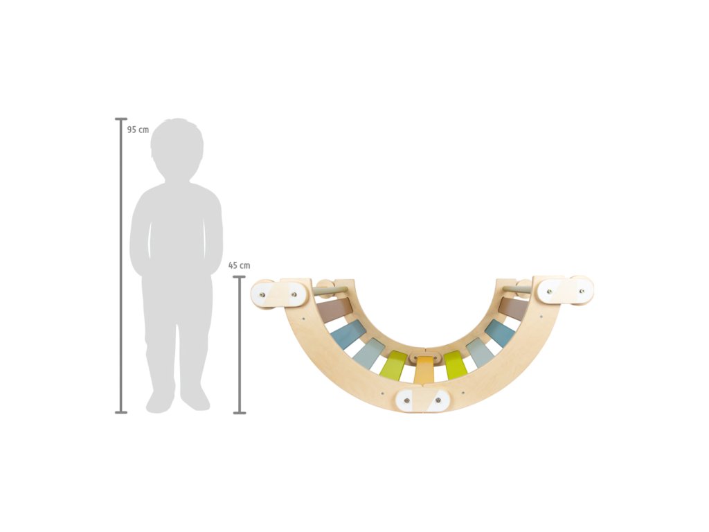 Prolézací houpačku mohu děti využít k sezení, šplhání, houpání, nebo jako domeček k prolézání. Mohou s její pomocí rozvíjet motorické dovednosti, rovnováhu či koordinaci pohybu, a lze ji tak využít i k pohybové terapii. Výšku a náklon hračky je možno individuálně přizpůsobit koncovými prvky opatřenými kolečky pro snadnou manipulaci. Skvěle doplní každý pokoj, nebo herní koutek a spolu s dalšími překážkami řady Small Foot Adventure hravě utvoří konstrukčně i barevně jednotnou gymnastickou dráhu. Je vyrobena z kombinace odolné překližky a masivního dřeva. Výrobek vyžaduje montáž, dodáváno s detailním návodem k sestavení. Hlavní vlastnosti:multifunkční, k houpání i prolézánínastavitelná výška a náklonodolné dřevěné provedenínosnost max. 50 kg