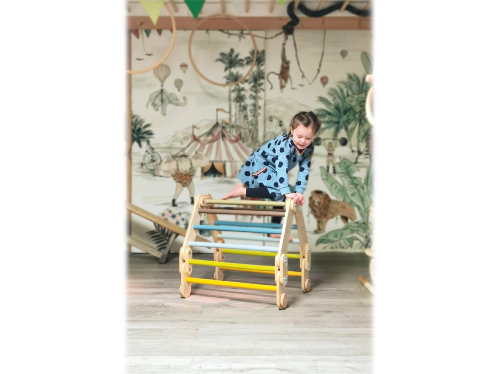 Prolézací žebřina vyniká svou flexibilní, nastavitelnou konstrukcí. Lze ji rozložit do několika různých tvarů, a pobízí tím k tvorbě celých sestav tvořených větším počtem této hračky. Díky této vlastnosti může být v případě potřeby také mimořádně skladná. Děti mohou s její pomocí rozvíjet motorické dovednosti, rovnováhu či koordinaci pohybu, a lze ji tak využít i k pohybové terapii. Skvěle doplní každý pokoj, nebo herní koutek a lze ji hravě kombinovat s dalšími, konstrukčně i barevně sjednocenými, překážkami řady Small Foot Adventure. Je vyrobena z kombinace odolné překližky a masivního dřeva. Výrobek vyžaduje montáž, dodáváno s detailním návodem k sestavení. Hlavní vlastnosti:široké možnosti nastavení a rozloženíodolné dřevěné provedenínosnost max. 50 kg