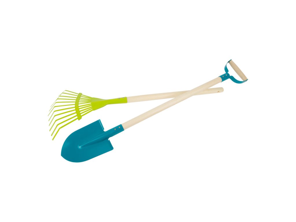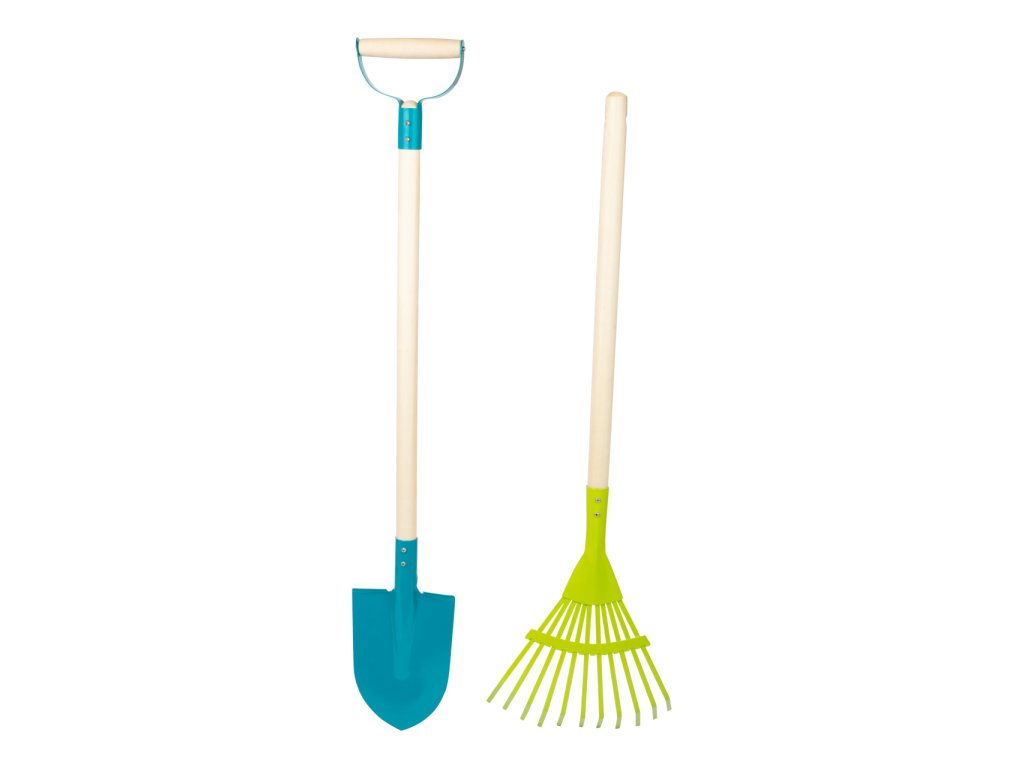 Zahrada volá! Set zahradního nářadí se skláda z rýče a hrábí. Rýč je zaoblený, zakončený rukojetí ve tvaru D pro jednodušší manipulaci. Hrábě pomohou s jednoduchým hrabáním listí. Velikostně tak akorát pro dětské ruce. Hlavní vlastnosti: ideální velikost pro děti rozvíjí motoriku, rovnováhu a vztah k přírodě vyrobeno z kovu, dřevěná násada
