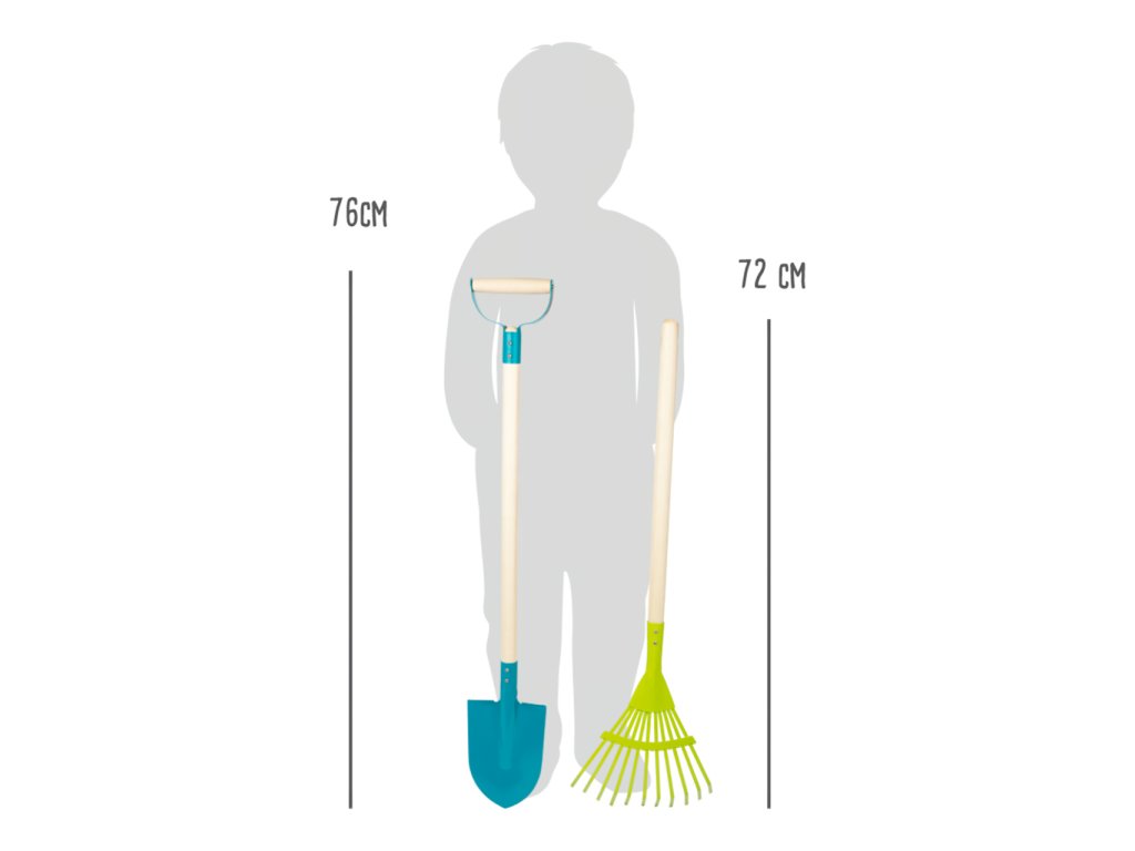 Rozměry: rýč 76x12x3 cm, hrábě 72x21x5 cm