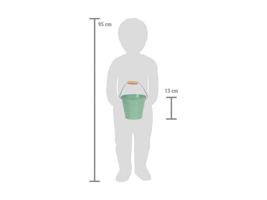 Rozměry: výška kbelíku cca 14 cm, Ø cca 15 cm, zahradní nářadí: cca 6,5x2,5x22 cm