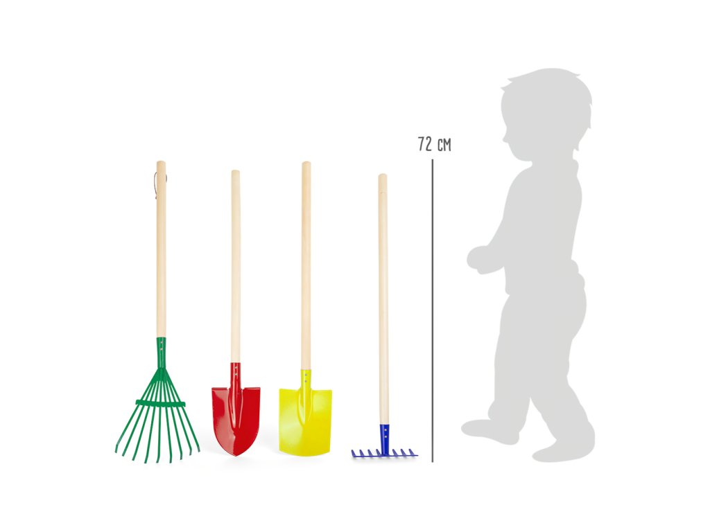Zima je u konce! Je nejvyšší čas, aby se záhony připravily na jaro - nebo možná vytvoříte i několik nových? Pevná sada zahradního nářadí obsahuje dvoje hrábě, lopatu a rýč. Ve svých jasných barvách je vhodná pro jakýkoliv úkol na zahradě. Živé barvy a realistický design usnadňují mladým zahradníkům napodobovat dospělé a učit se od nich. Po dokončení práce mohou být nástroje řádně zavěšeny za provazové konce. Toto zahradnické nářadí potřebuje už jen květiny a půdu! Hlavní vlastnosti: Ideální velikost pro dětiRozvíjí motoriku a vztah k příroděVyrobeno z kovu, dřevěná násada