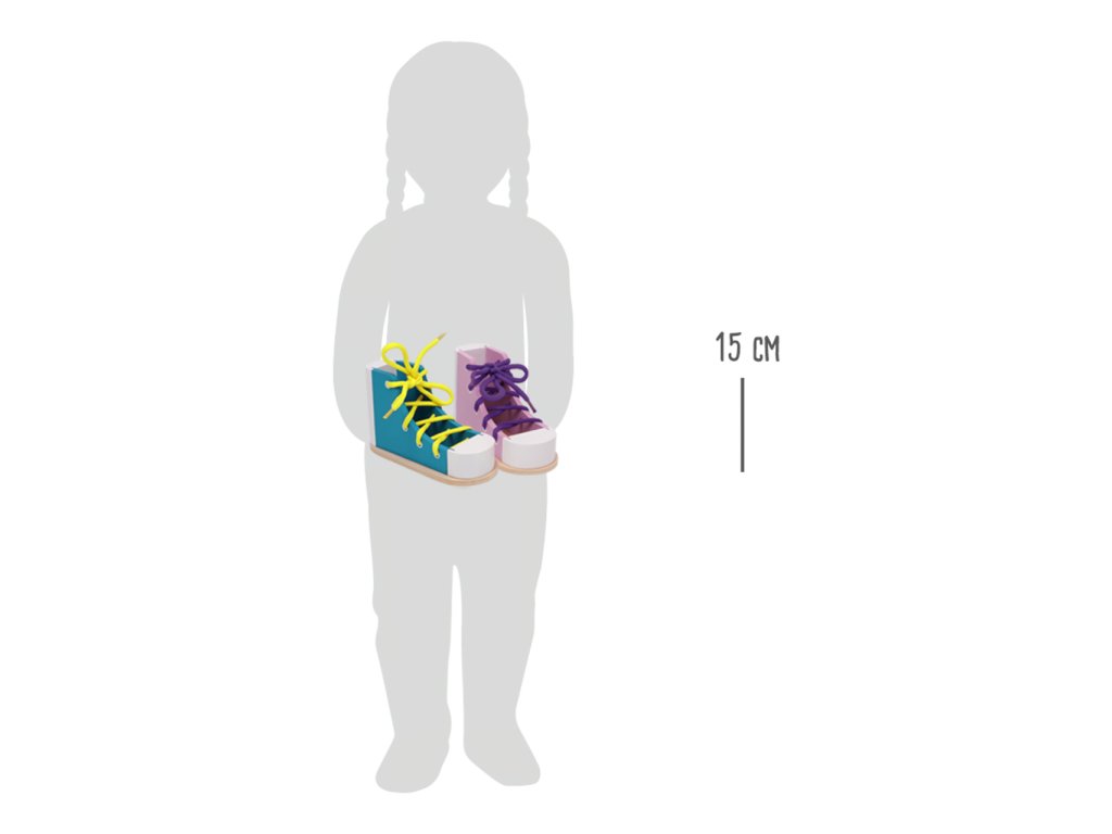 Tyto neobyčejně krásné dřevěné botičky, vyrobené s německou precizností a pečlivostí, nejsou jen obyčejnou hračkou, ale první krok k samostatnosti vašeho dítěte. S každým stáhnutím tkaničky a každým vytvořeným uzlem se vaše dítě učí základní dovednosti, které mu pomohou růst a rozvíjet se. Jsou dokladem toho, že učení se může stát dobrodružstvím. Každý uzel, každá smyčka je krokem k nové dovednosti. Už žádné zápasy s opravdovými tkaničkami – s tímto setem se váš malý objevitel naučí vázat mašle hravě a bez slz. Představte si ten pocit hrdosti a radosti, když vaše dítě poprvé zaváže tkaničku samo. S tímto setem to není jen sen.A navíc, díky své kompaktní velikosti, může být "Zavaž si tkaničku Bota" stálým společníkem na cestách, přinášejícím nejen zábavu, ale i cenné lekce. Kdo by si pomyslel, že učení se zavazování bot může být takto poutavé? Sledujte, jak vaše dítě rozvíjí své dovednosti, trpělivost a koordinaci ruka-oko s každou novou mašlí. Hlavní vlastnosti: sada 2 dřevěných navlékacích botučební hračkaideální pro děti ze školky
