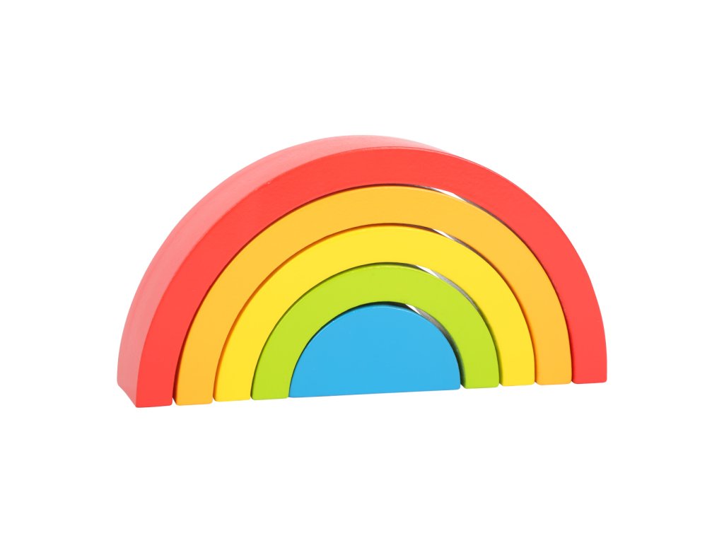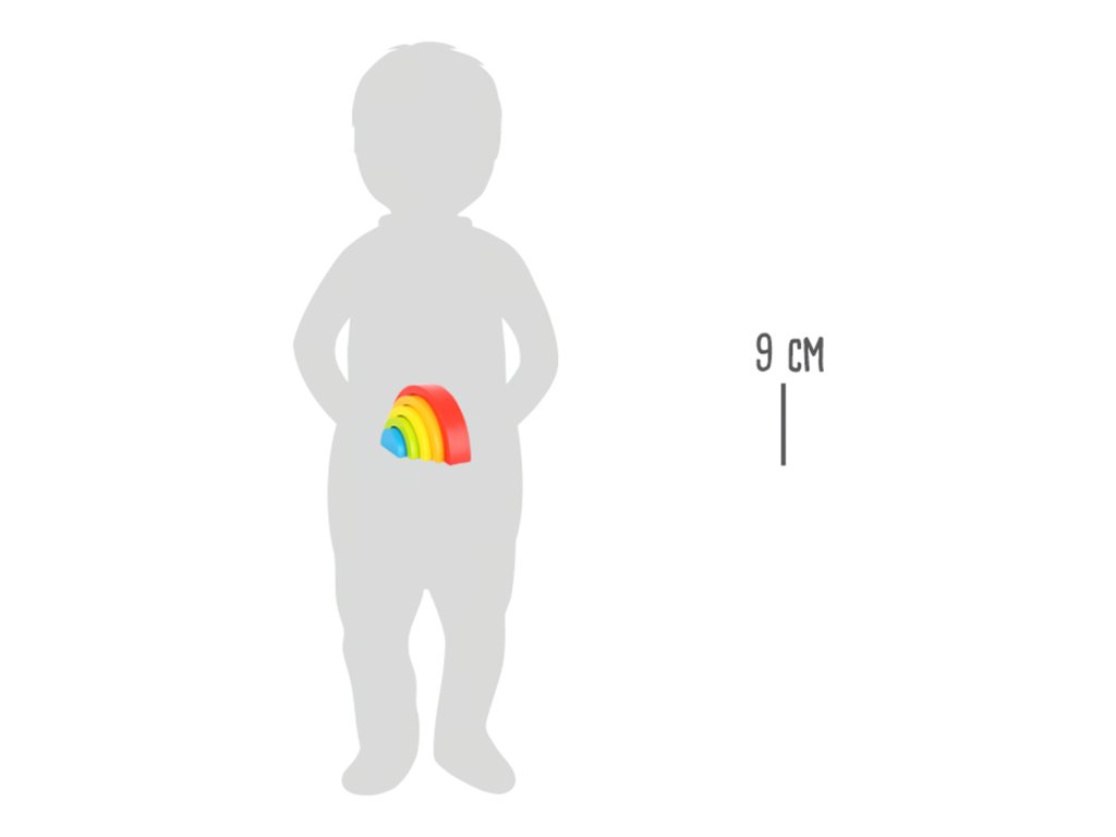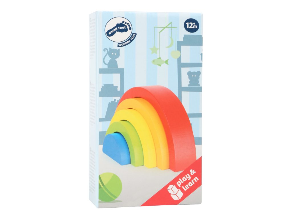 Umíte složit duhu ve správném pořadí? Tento pestrobarevný půlkruh z pevného dřeva je snadným vstupem do světa motorických dovedností. S vodou a slinám odolnými barvami nabízí malým dětem nejen možnost naučit se barvy a tvary, ale také prostorové povědomí, obratnost a koordinaci rukou a očí. Skvělá didaktická hračka pro domácnost. Hlavní vlastnosti: Učí poznávat barvyTrénuje motoriku dětíVhodná od 12 měsíců