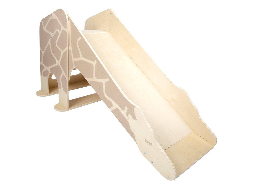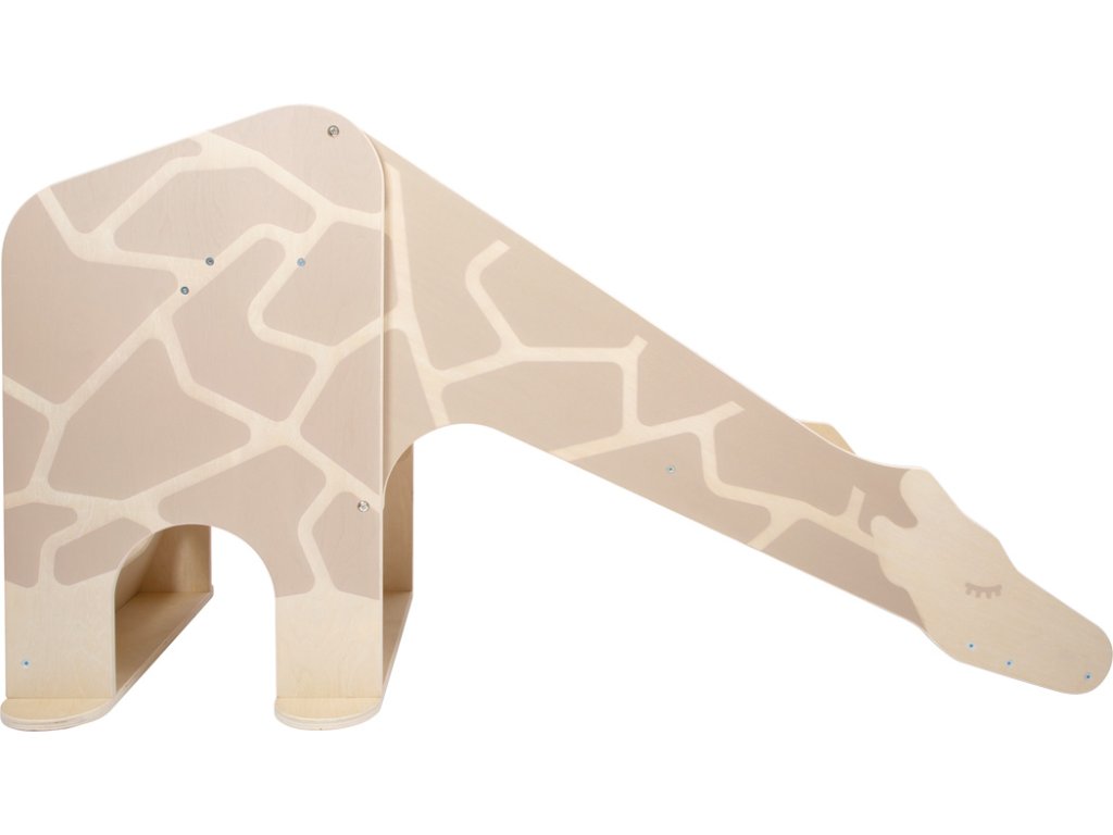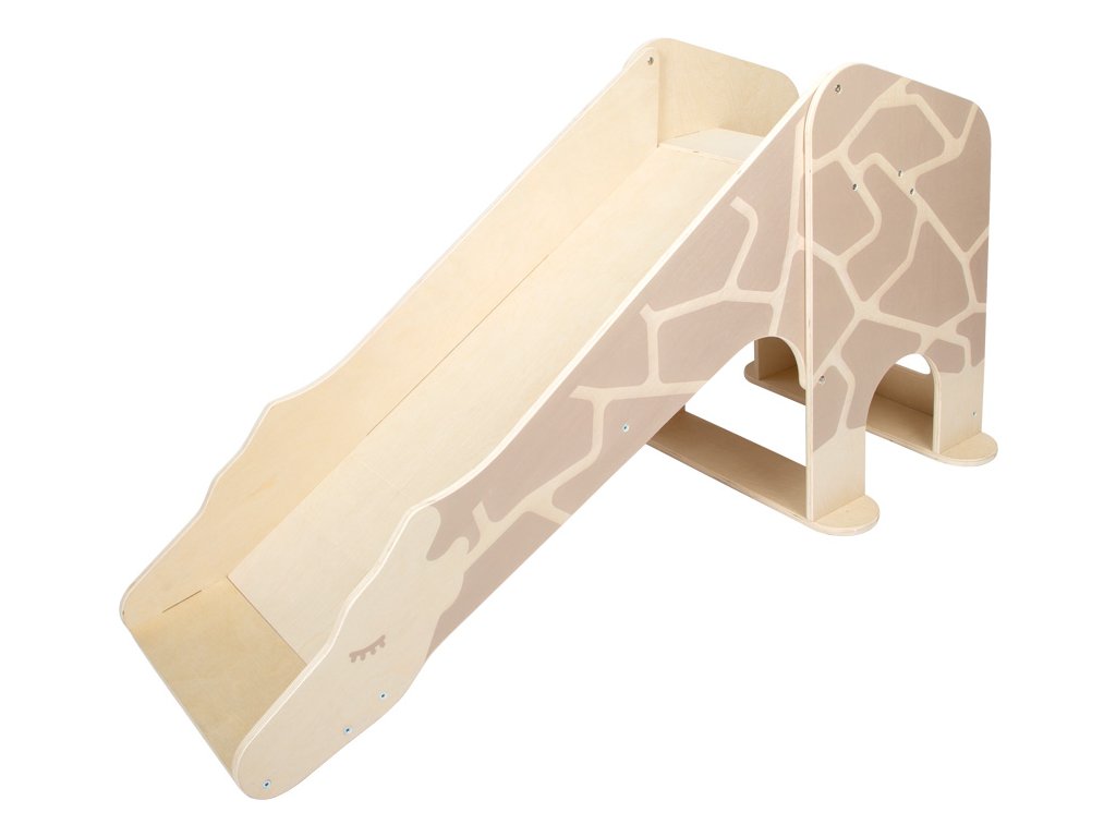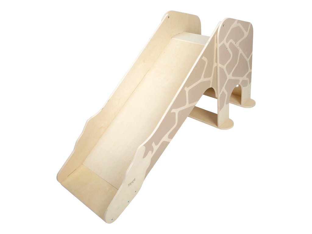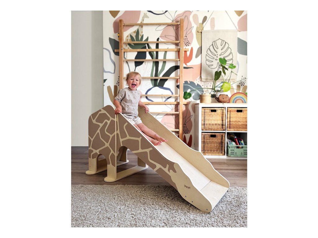 Skluzavka "žirafa" je bezpečná, multifunkční a ekologicky udržitelná. Tato vysoce kvalitní skluzavka pro děti je vyrobená ze dřeva. Se svým žirafím motivem nabízí krásný vzhled, vhodný pro moderní dětský pokoj nebo školku. Díky zaobleným hranám a bočním dílům, které slouží jako madla, nabízí optimální bezpečnost při skluzu. Pevné a stabilní nohy zaručují stabilitu. Dokonce i malé děti mohou vylézt po žebříkových schodech. Přistávací deska na konci skluzavky poskytuje jemný závěr každého skluzu. Když skluzavku nepoužíváte, lze ji snadno uložit vertikálně ke stěně. To šetří cenný prostor v místnosti a udržuje věci uklizené. Pro snadnou přepravu a skladování lze tuto vnitřní skluzavku rozdělit na 2 části uvolněním a odstraněním čtyř šroubů pomocí přiloženého imbusového klíče. Vhodná do vnitřních prostor, lze ji ale využít i jako skluzavku na venkovní zahradu v létě, kdy je vhodné a suché počasí. Skvěle se hodí k dalším doplňkům do školky z produktové řady "Wildlife". Hlavní vlastnosti: multifunkční vlastnostižebříkové schůdky ideální pro malé dětitrénuje motoriku a rovnováhuskvělý doplněk do dětského pokoje nebo školkyprodukt lze využít k pohybové terapiinosnost max. 50 kg
