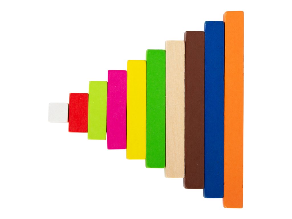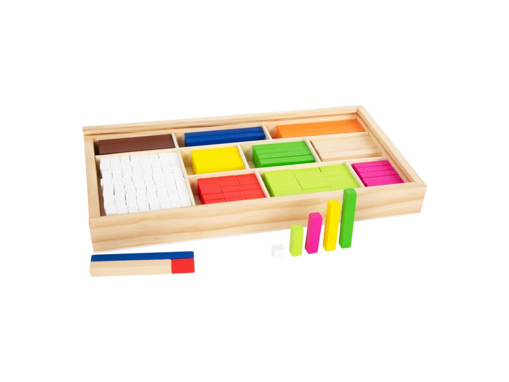 Je deset větší než tři? Tyto všestranné matematické tyčinky přispěji dětem k prvotnímu porozumění číslům a rychle a názorně je podpoří při prvních pokusech o matematické rovnice. Barevné tyčinky v různých délkách slouží jako orientační pomůcka. Děti předškolního věku získají základní matematické dovednosti při počítání, porovnávání a třídění tyčinek. Sada obsahuje 6 hnědých tyčinek, 6 modrých, 6 oranžových, 10 tmavě zelených, 10 tyčinek v barvě přírodního dřeva, 10 žlutých, 36 červených, 12 růžových, 36 světle zelených a 176 bílých tyčinek. Tyto tyčinky jsou ideální společníci pro matematické profesionály všech věkových kategorií. Trénují představivost a logické myšlení a zároveň předávají pochopení velikostí a barev. Všechny tyčinky lze po ukončení učení roztřídit a uložit do přiložené dřevěné krabice s posuvným víkem. Hlavní vlastnosti: 308 ks víceúčelových matematických tyčinek jako ideální úvod do světa číselpočítání, porovnávání a třídění přináší dítěti první základní matematické dovednostibaleno v dřevěné krabici s posuvným víkem