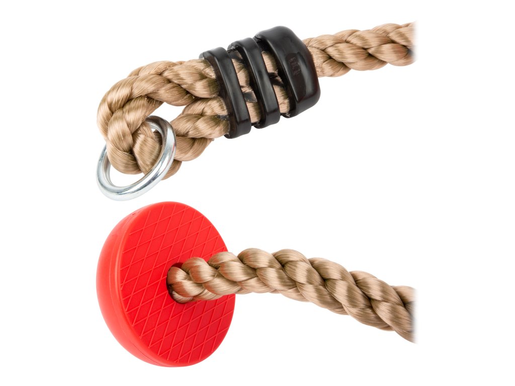 Klasické, robustní šplhací lano se stupínky čeká na všechny rozené lezce. Pomáhá dětem zábavnou formou zesílit a trénovat koordinaci pohybu a rovnováhu. Silné plastové lano je odolné povětrnostním vlivům a lze jej bez potíží uplatnit v exteriéru, na dětském hřišti. Vybaveno kovovým kroužkem k zavěšení. Hlavní vlastnosti:lano s 5 stupínkymax. nosnost 100 kgrobustní, odolné provedení