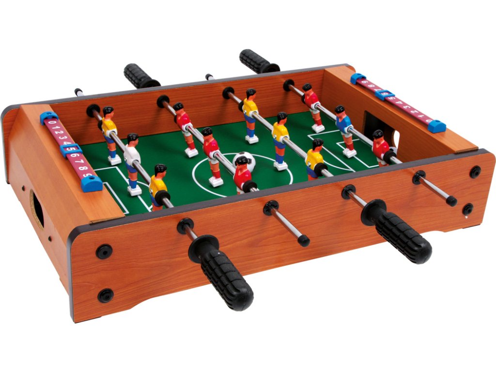 Tento malý stolní fotbal je zábavná hra. Každý tým má 6 hráčů. Na své si přijdou malí i velcí fotbaloví fanoušci. Rychlá hra trénuje koordinaci ruka-oko a přináší spoustu zábavy - takový je stolní fotbal. V balení najdete 2 ks míčků. Hračka je vyrobena z lakovaného dřeva. Fotbálek je vybaven počítadly gólů. Hlavní vlastnosti: trénuje koordinaci ruka-okovčetně 2 míčkůpočítadlo gólů