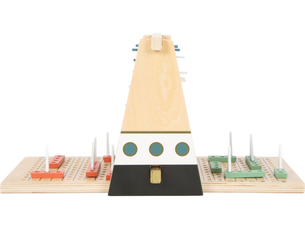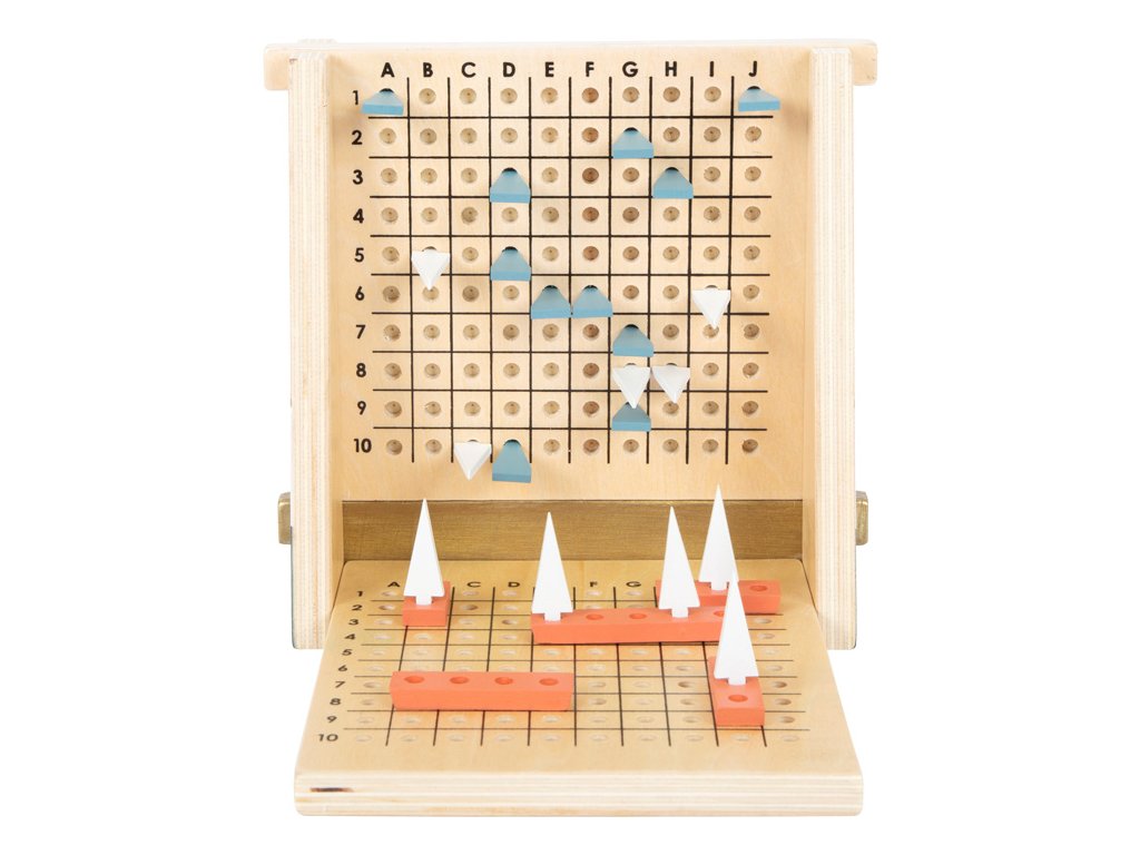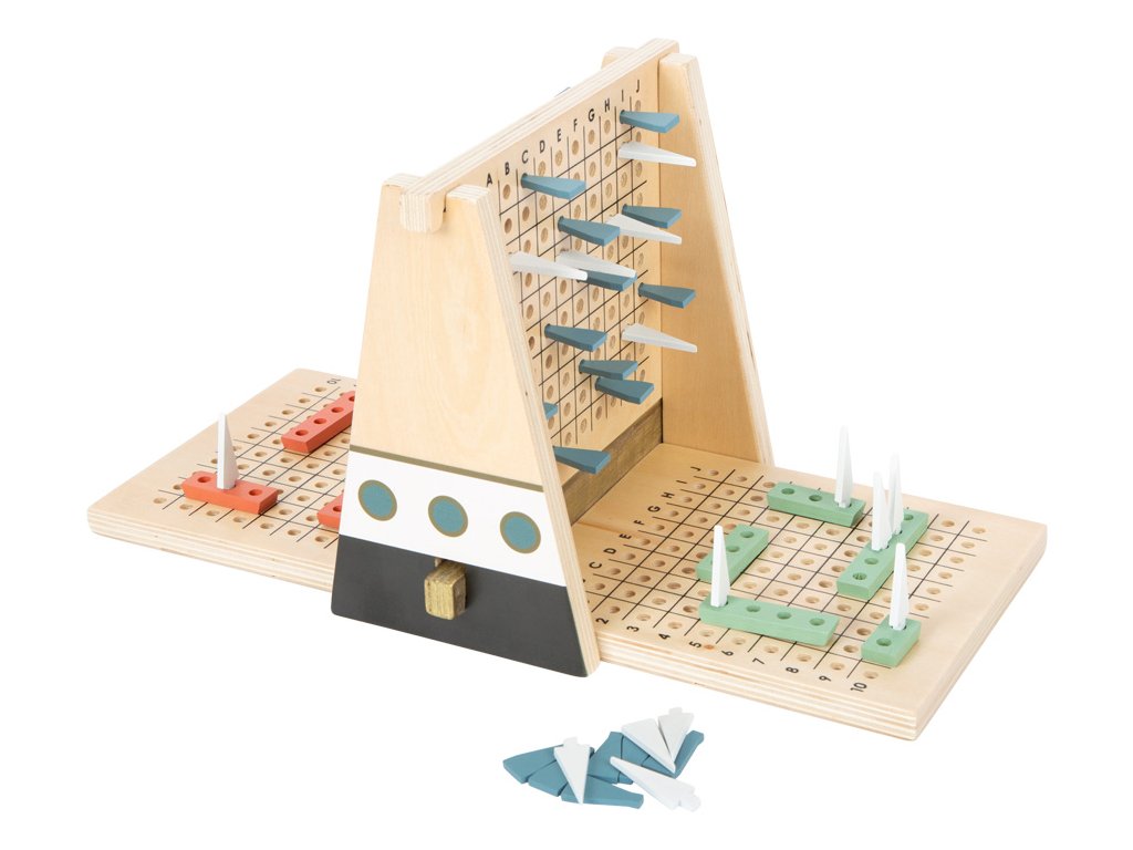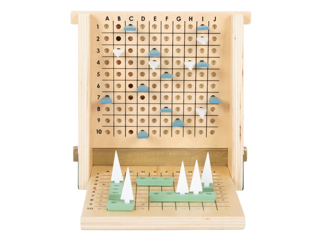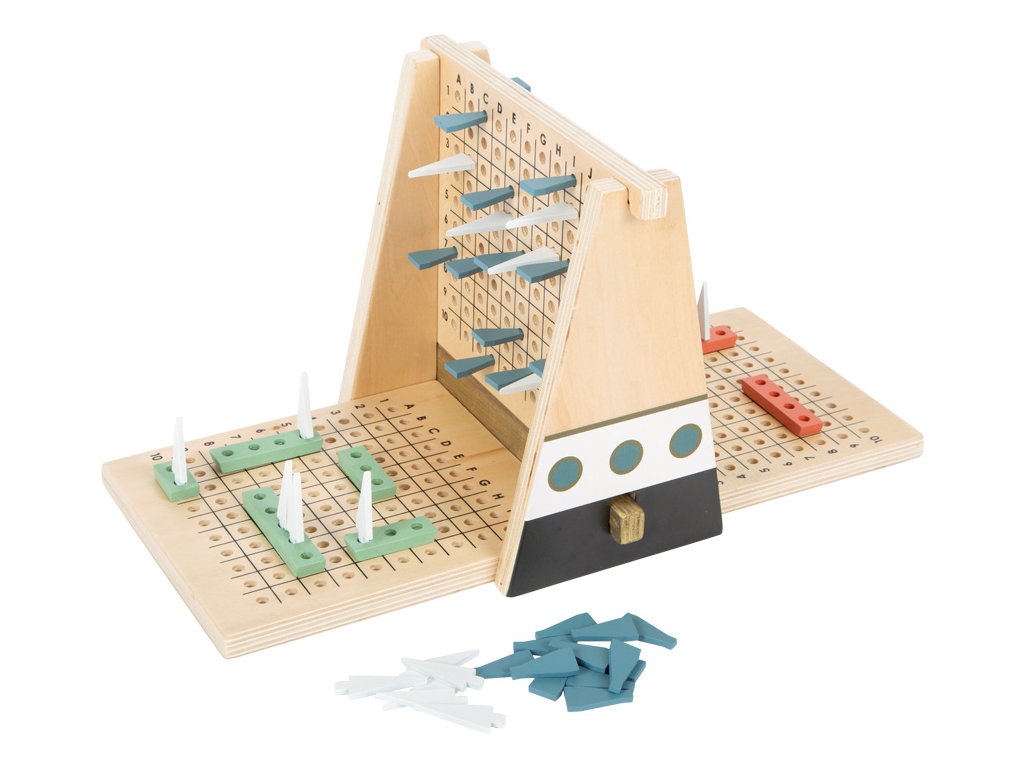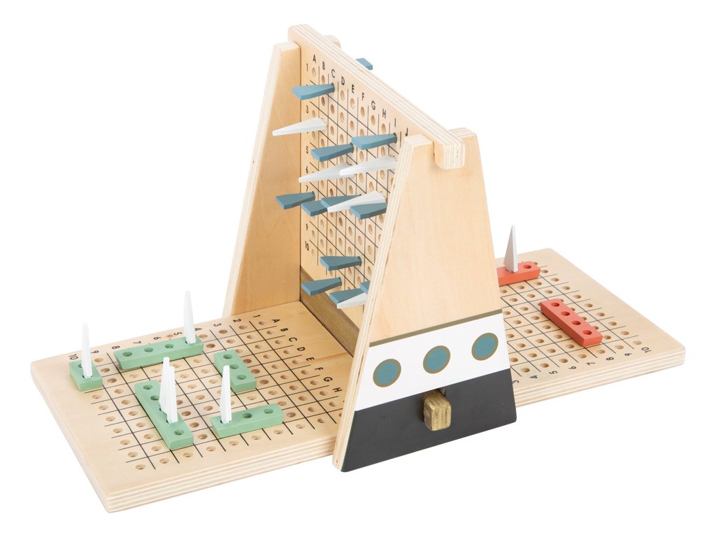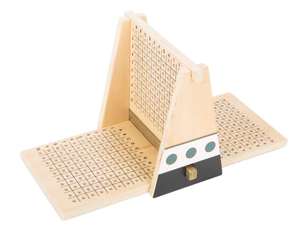 Kdo najde jako první všechny lodě flotily? Tato strategická hra je plně dřevěná a jistě všechny nadchne svým designem se sofistikovanými zlatými detaily v kombinaci s černou, bílou, pastelovými barvami a také viditelným dřevem. Klasická hra bitevní loď v moderním designu. Stabilní konstrukce s magnety zabudovanými v rámu. Zabaleno ve velmi kvalitním boxu. Zásah na A5! Fantastická hra pro dva hráče, která je o strategii i o štěstí. Rozestavte lodě na svou herní plochu, díky středové desce na ni váš protihráč neuvidí. Na tuto středovou desku si pak poznačte zásahy a rány vedle. Modré praporky pokud zasáhnete okolí lodě, bílé pokud zasáhnete loď. Kompaktní hra je také perfektní na cesty. Hlavní vlastnosti: dřevěná strategická hrapřírodní dřevo, pastelové barvymagnety v rámu zajišťují stabilitupříjemné vzhledově i na dotekkompaktní hra na cestyuloženo ve velmi kvalitním boxupomáhá rozvíjet logické myšlení a soustředěnost dětíhodí se k ostatním hrám ze série Gold Edition