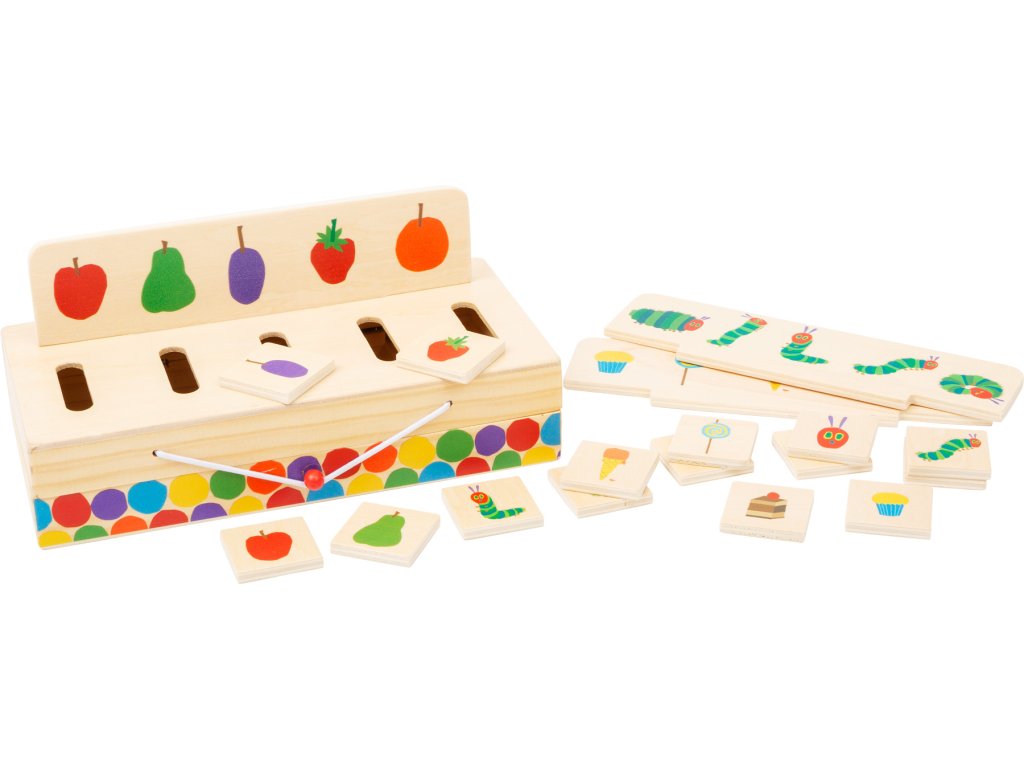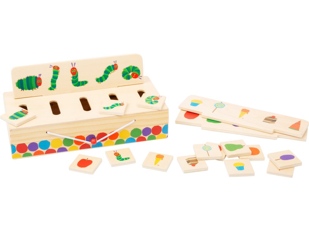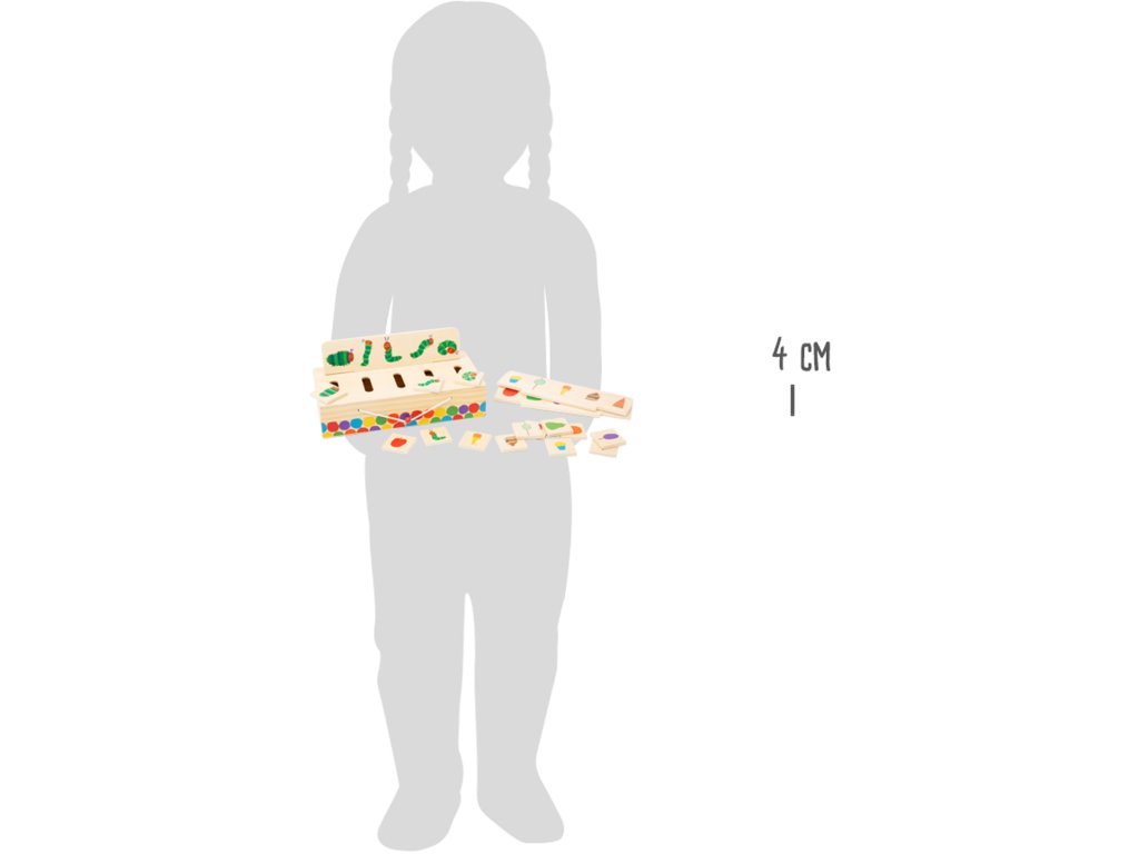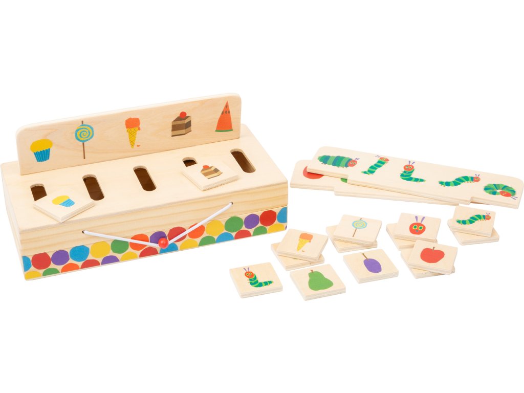 Seřaďte obrázky s různými motivy. V této šikovná, 19 dílné třídící hře ze dřeva s barevným designem budete rozpoznávat tvary a barvy. Dřevěné desky potištěné motivy se jednoduše umístí na otvor ve víku, takže je lze přiřadit k odpovídajícím motivům. Krabici lze snadno uzavřít elastickou páskou a dřevěným knoflíkem. Během cestování se tedy nic nevytratí. Hlavní vlastnosti: cestovní hravkládačka podporuje v rozpoznávání tvarů a barev19 dílků