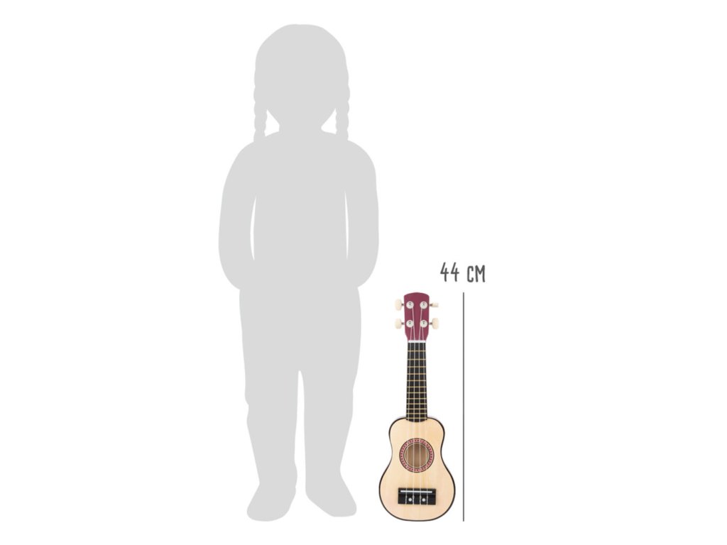 Hrajte jako zkušení muzikanti s tímto dřevěným dětským ukulele. Robustní, ale lehký hudební nástroj, který je velký tak akorát pro dětské ruce, má 4 nylonové struny, které můžete ladit. Hudba nemá pravidla, můžete ale hrát podle přiložených not. Hra na hudební nástroje trénuje koordinaci ruka-oko a hudební sluch. Perfektní úvod do hudebního vzdělávání. Hlavní vlastnosti: nylonové strunyideální pro první hranírozvíjí talent dětí, cit pro rytmus a melodii