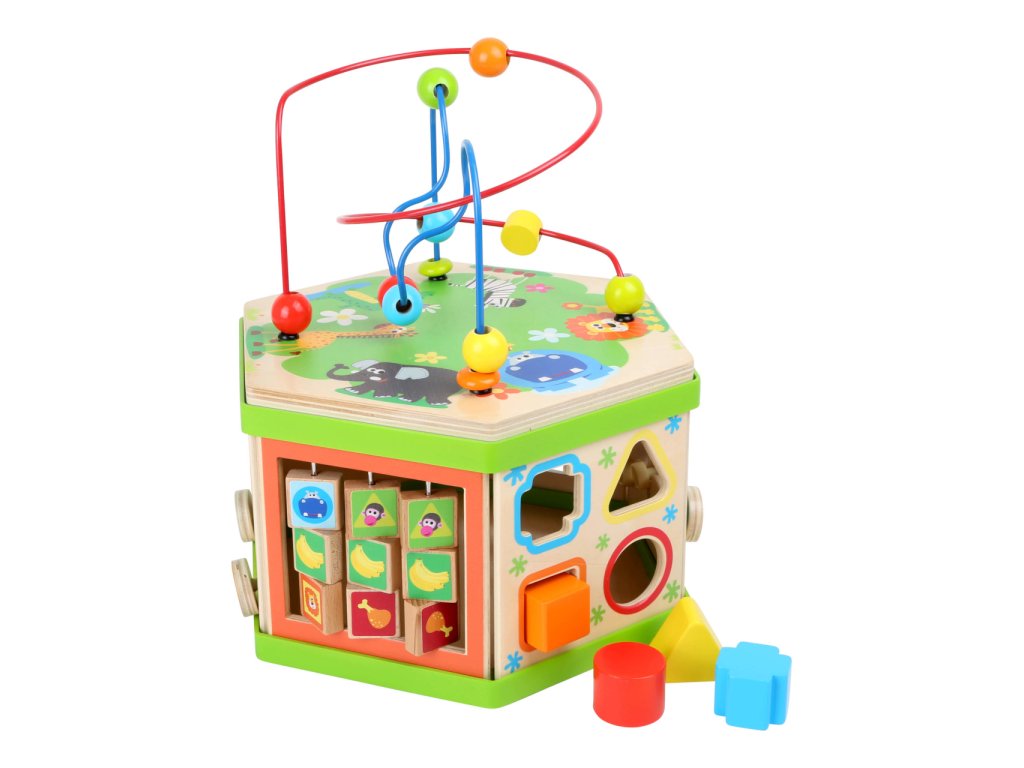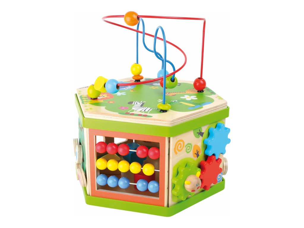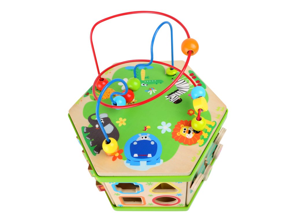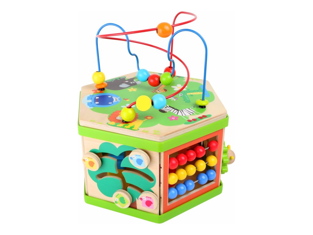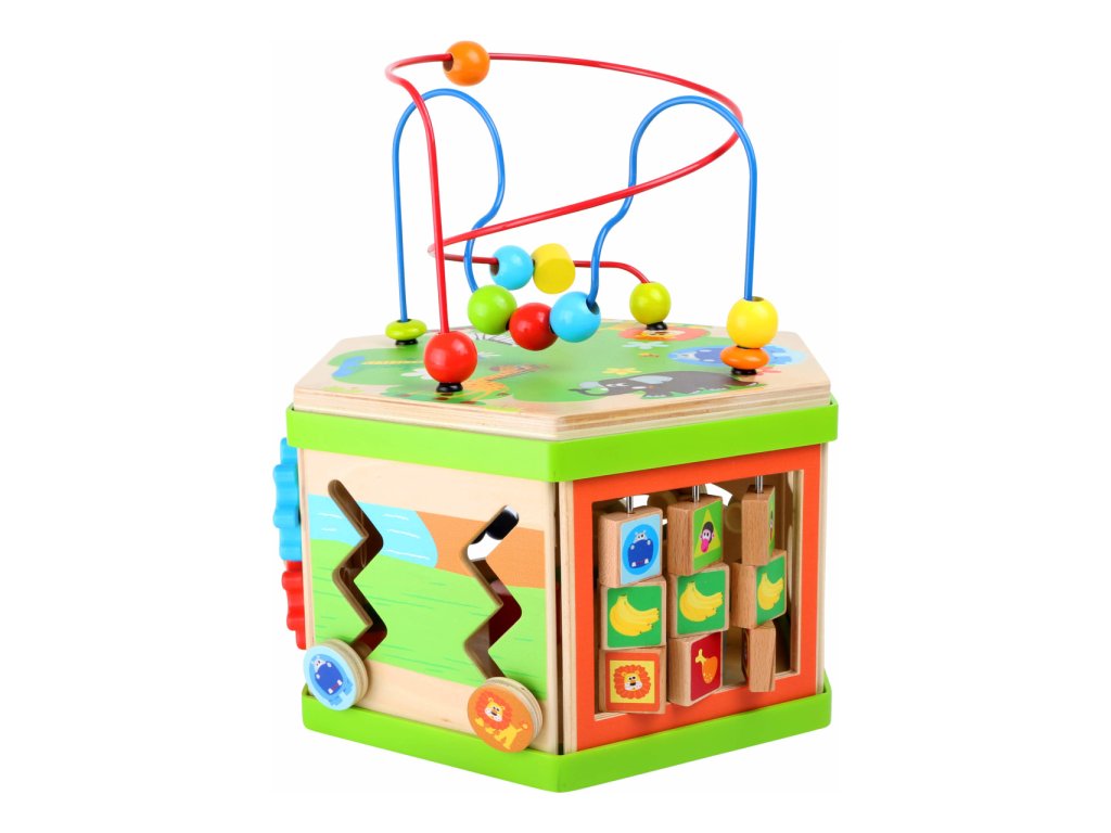 Představujeme Small Foot Velká motorická kostka safari – revoluci v dětské zábavě a vzdělávání! S touto robustní dřevěnou kostkou, ozdobenou roztomilými safari zvířátky, otevíráte dveře do světa plného objevů, kde každá hratelná plocha je novým dobrodružstvím. Představte si, že vaše dítě objevuje radost z učení, zatímco jeho prstíky se snaží ovládnout posuvné pravítko nebo se směje, když skluzavka dopraví zvířátko do cíle. Sedm interaktivních ploch Small Foot Velké motorické kostky safari je navrženo tak, aby podněcovalo zvědavost a touhu poznávat. Od posilování jemné motoriky až po koordinaci oko-ruka, tato kostka je víc než hračka - je to brána k nekonečnému objevování. Není to jen o hře. Small Foot Velká motorická kostka safari je také designový skvost, který se pyšní výrobou v Německu, zaručující kvalitu a bezpečnost, které si váš malý průzkumník zaslouží. Vnitřní úložný prostor kostky slouží jako tajná komora pro zásuvné prvky, udržuje pořádek a zároveň podněcuje dětskou fantazii. A s potiskem atraktivních zvířecích ilustrací se stane i okouzlujícím doplňkem každé dětského pokoje. Přidejte do života vašeho dítěte rozměr kreativity a učení, který bude posilovat jeho dovednosti každý den. Hlavní vlastnosti: veselý barevný safari designmultifunkční aktivity motorická kostka na 7 hratelných plocháchrozvíjí jemnou motoriku, koordinaci oko-ruka a soustředěníinteriér nabízí úložný prostor pro zásuvné prvkyvhodné od 12 měsíců