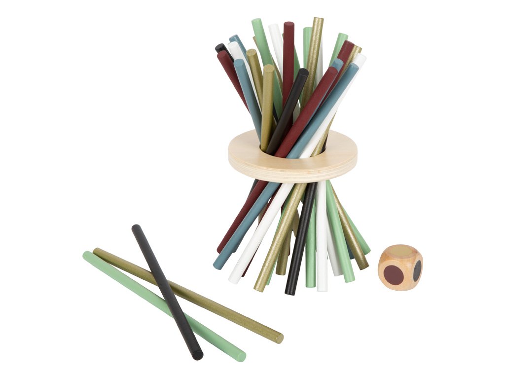 Omrzela Vás běžná verze mikáda a hledáte svěží zábavu? Vyzkoušejte jeho neotřelou variantu s přírodním dřevěným kroužkem. Házejte kostkou a pokuste se postupně uvolňovat tyčinky příslušných barev, dokud neopatrností nepohnete s kroužkem, nebo jinou než taženou tyčinkou. Procvičujte hrou soustředění, trpělivost a zručnost. Dlouhé hodiny herní zábavy pro celou rodinu jsou zaručeny! Hlavní vlastnosti: rozvíjí logické myšlenítrénuje motoriku
