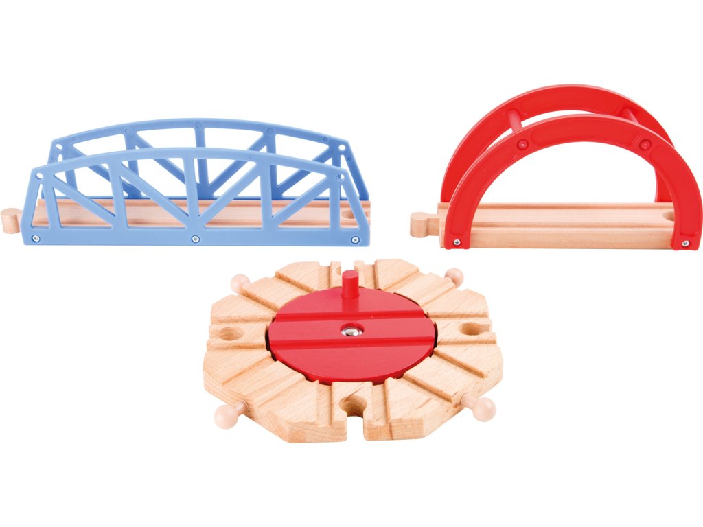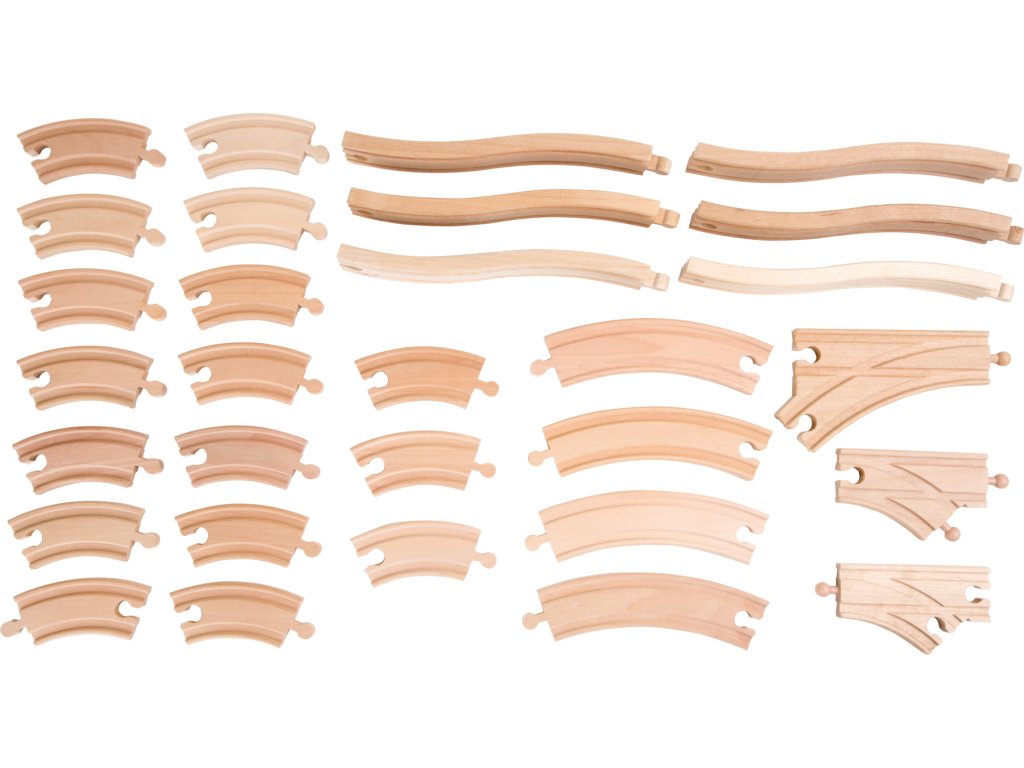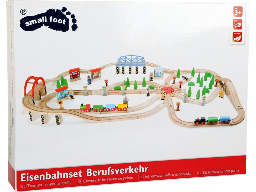 S touto dřevěnou železniční soupravou ožije život na kolejích. Robustní dřevěné koleje a výhybky umožňují vagonům bezpečně dojet do cíle. Krajinu doplňují stromy a různé dřevěné budovy, mosty, postavičky, lokomotivy a vagóny. Hlavní vlastnosti: Materiál: dřevoObsahuje 140 ksvhodné od 3+