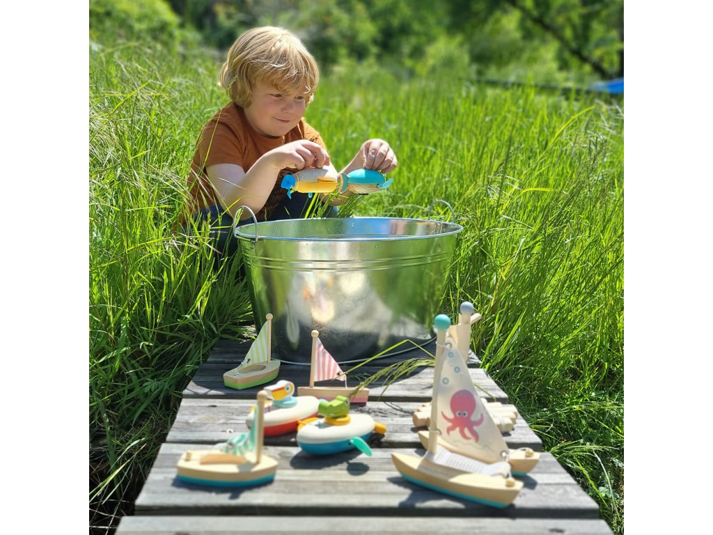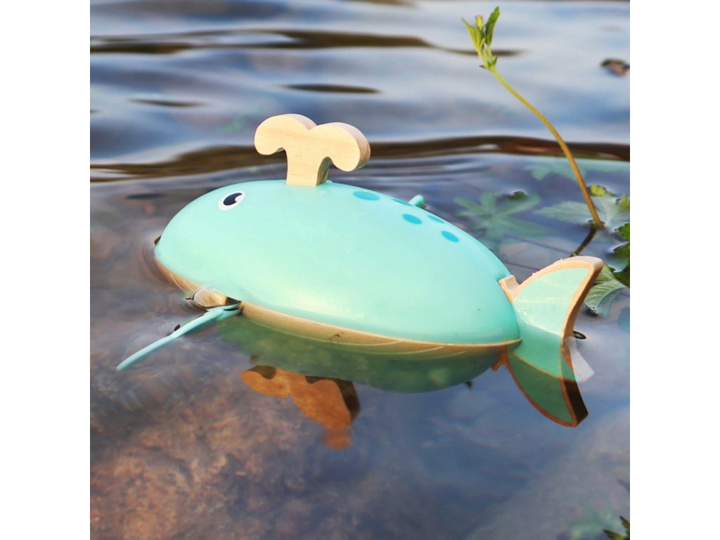 Tato roztomilá dřevěná hračka nabídne mnoho vodní zábavy. Děti si s ní mohou hrát ve vaně, na bazéně nebo u moře, velryba je jistě také naučí plavat! Díky praktickému natahovacímu mechanismu dokáže velryba plavat po vodě samostatně, má dvě ploutve. Vodní hračka, kterou musíte mít i ve svém vlastním mini oceánu. Vodní hračky vyrobené ze dřeva jsou ekologičtější alternativou plastových a gumových hraček. Při hře s velrybou se děti naučí o principu příčiny a následku, díky natahovacího mechanismu. Pro delší životnost hračky ji po vytažení z vody pořádně osušte. Hlavní vlastnosti: využití ve vaně, na bazéně nebo u mořenatahovací mechanismus umožňuje otáčení bočních ploutvívhodné pro rozvoj fantazie a koordinace