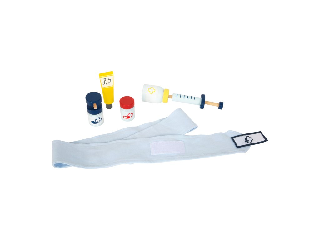 Vše pro naléhavé případy! Tento realistický batoh pro záchranáře má jasné barvy, nastavitelné popruhy a mladí záchranáři v něm najdou všechny „opravdové“ lékařské pomůcky. Dvojitý zip a uvnitř elastické kapsy nabízí mnoho úložného prostoru a rychlý přístup k záchranářským pomůckám z pevného dřeva. Nejlepšími doplňky jsou zřejmě tlakoměr s manžetou a balónkem, otoskop s lupou a defibrilátor s tabulkou pro křídu. Tento inovativní a obsáhlý set lékařských hraček obsahuje mnoho „opravdových“ lékařských nástrojů a přístrojů, s kterými si děti opravdu vyhrají, to vše v jednom batohu. Dále v batohu najdete teploměr, dětské textilní roušky, ampule s otvorem pro vložení stříkačky pro případ nouze, dezinfekční sprej s pumpičkou, infúzi, náplasti na suchý zip, stetoskop, injekční stříkačku s pohyblivým mechanismem, skalpel, pinzetu a rádio. S těmito pevnými hračkami mohou děti objevovat a zkoušet, jaké je to být záchranářem. Ilustrace na lékařských pomůckách dětem poradí rozeznat nástroje a také jim možná zjednoduší jejich použití. Hlavní vlastnosti:tlakoměr s manžetou a balónkem, lze také použít pro zajištění infúzeotoskop s opravdovou lupouteploměr s nastavitelnou teplotouznovu použitelné a pratelné dětské textilní rouškydefibrilátor s křídou pro zaznamenání srdečního tepudalší vybavení: ampule s otvorem pro vložení stříkačky pro případ nouze, dezinfekční sprej s pumpičkou, náplasti na suchý zip, lahvička na léky se šroubovatelným víčkem, injekční stříkačka s pohyblivým mechanismem, stetoskop, skalpel Ocenění hračky:ToyAward 2022