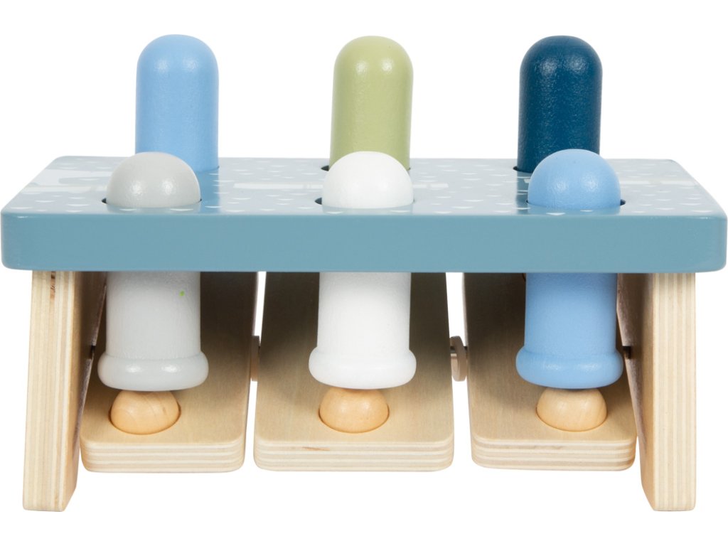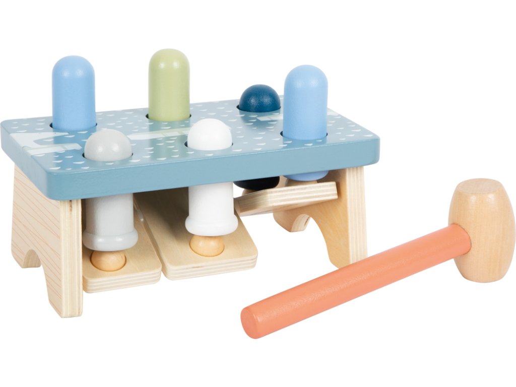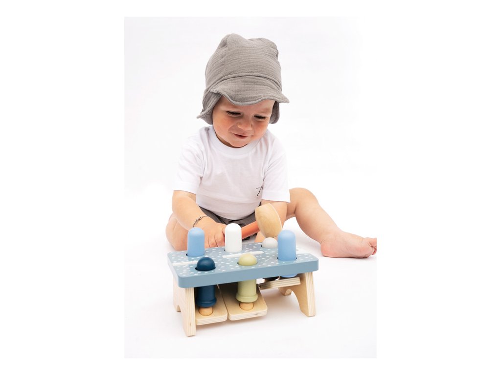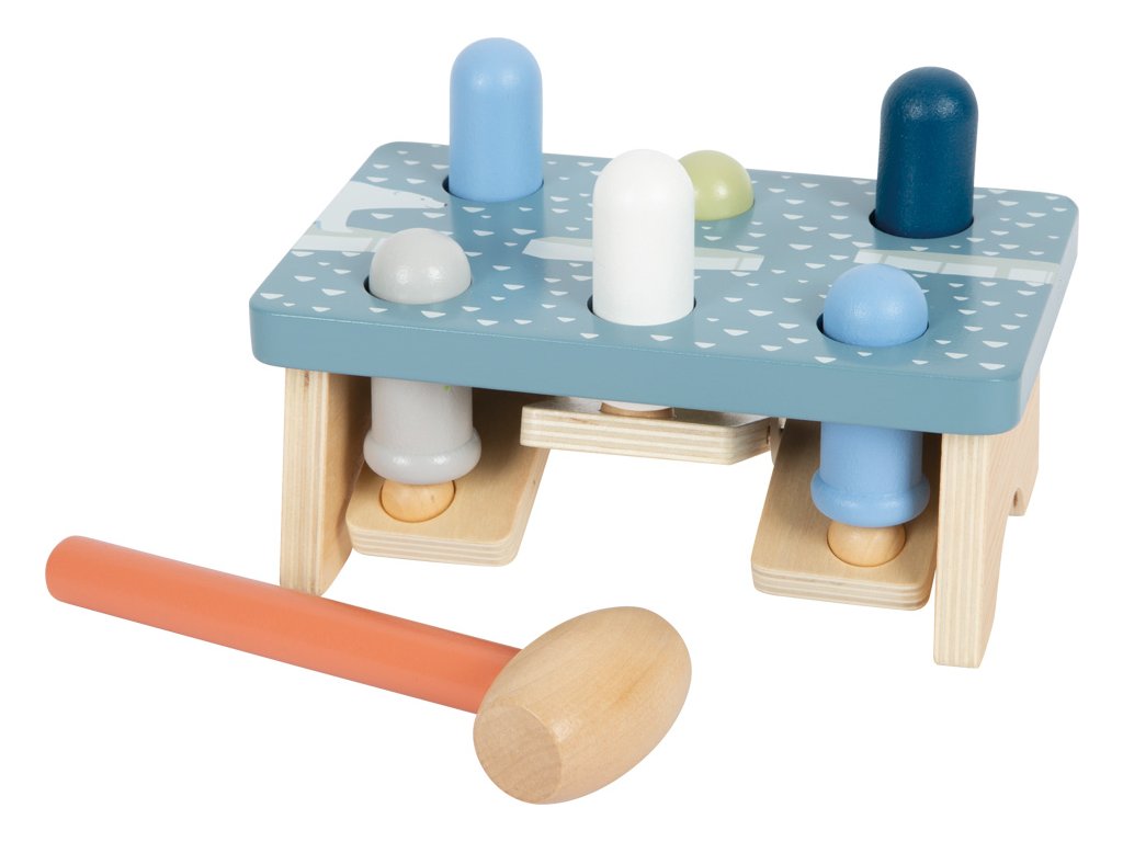 Klasická zatloukací hra je vyrobena z certifikovaného FSC® dřeva a je nejen zábavná, ale i naučná. Je součástí řady Arctic a díky barevnému provedení v bílé barvě v kombinaci s odstíny modré a zimnímu motivu na horní straně stojánku si mohou děti představit, že zatkoukáním kolíků připravují cestu z ledových ker pro ledního medvěda. Ve stojánku je umístěno 6 kolíků, které jsou důmyslně propojeny a když se zatluče kolík na jedné straně, ten na straně druhé se ze stojánku vysune nahoru. Děti při zatloukání zažijí spoustu legrace, ale také se naučí, jak funguje příčina a následek, trénují koordinaci ruka-oko a rozvíjejí motoriku. Hlavní vlastnosti: rozvíjí koordinaci ruka-okorozvíjí motoriku a obratnostrobustní a odolné provedenípodněcuje kreativní a nápaditou hrus motivem ledního medvěda vyrobeno z certifikovaného FSC® dřevasoučást řady Arctic Značka a certifikát FSC® (Forest Stewardship Council) zaručuje, že dřevo, ze kterého byl produkt vyroben, nebylo vytěženo nelegálně a pochází z lesů obhospodařovaných šetrným či přírodě blízkým způsobem, ve kterém jsou dodržovány přísné environmentální a sociální požadavky. Značka FSC® na výrobku znamená, že svým nákupem pomáháte chránit lesy a podporujete šetrné, odpovědné či přírodě blízké hospodaření, díky kterému jsou naše lesy stabilnější, zdravější, mají přirozenou druhovou skladbu a lépe odolávají negativním následkům klimatických změn.