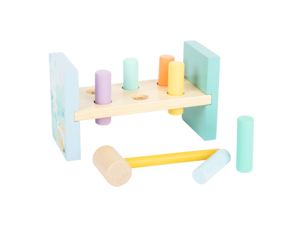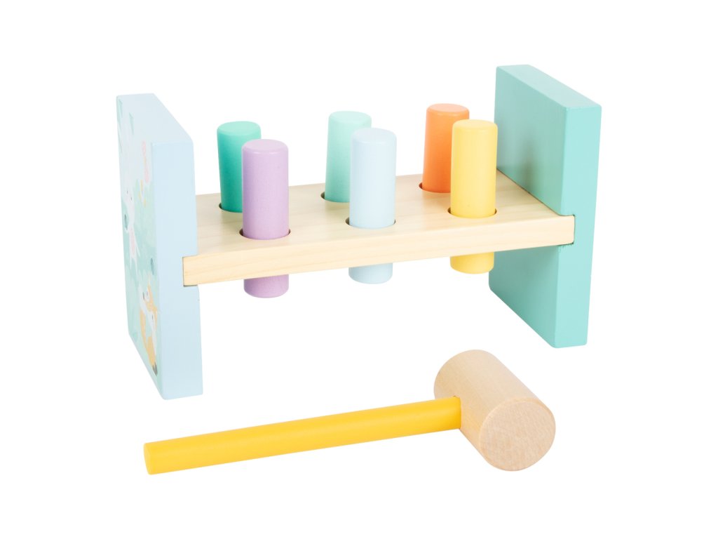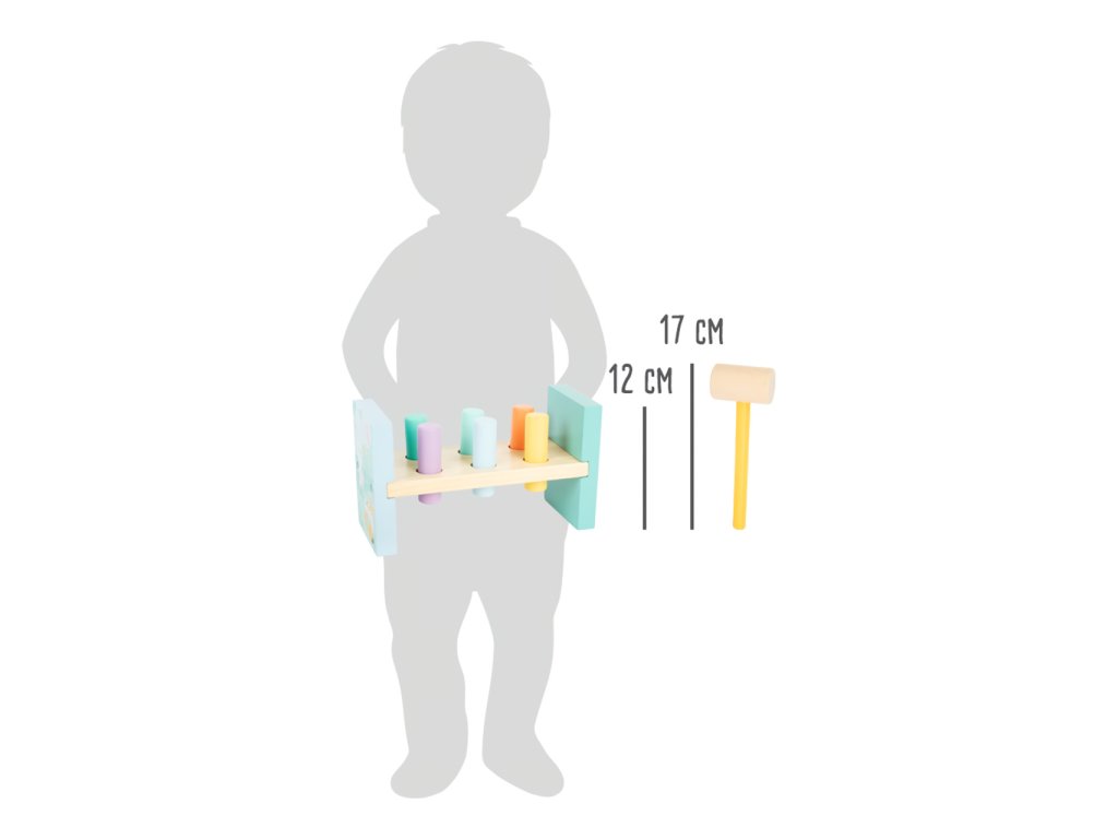 I zatloukání může být stylové! Se zatloukací hračkou v pastelových barvách si děti mohou změřit svou sílu. Klasická hra, která trénuje koordinaci ruka-oko a motoriku dětí. Zatloukačka má krásné barvy a ilustraci zvířátek. Po zatlučení všech kolíků hračku jednoduše otočte. Krásná zatloukací hračka je součástí produktové řady „Pastel“ a zaujme vysokým viditelným podílem dřeva a moderním zabarvením v pastelových barvách. Hlavní vlastnosti: ilustrováno, jemné pastelové barvyrobustní a odolné provedení