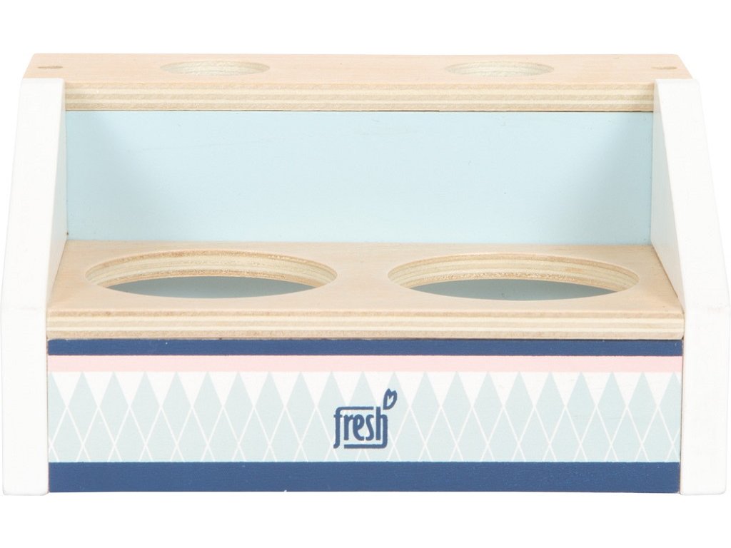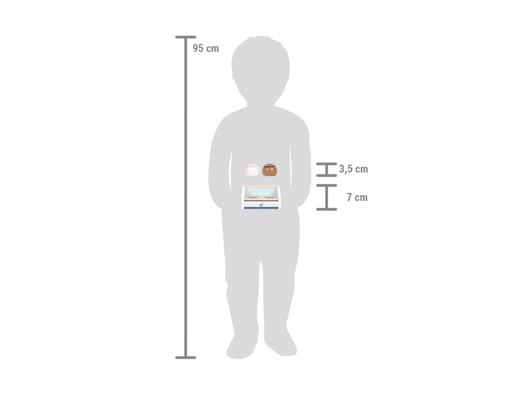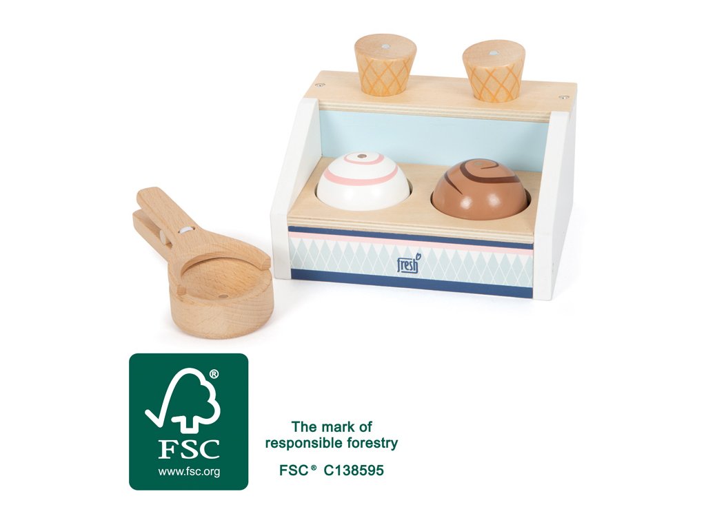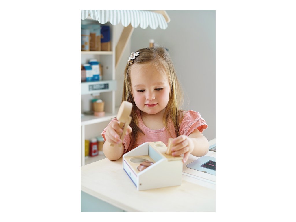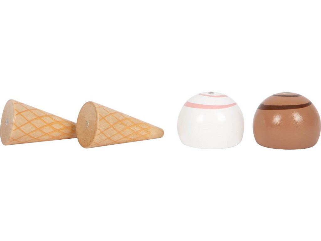 Dnes máme zmrzlinu! Tento displej se dvěma přihrádkami se díky svému minimalistickému designu a přírodního materiálu báječně hodí do malých kuchyněk každého dětského pokojíku! Obsahuje naběračku, kornoutky a stohovatelné kopečky zmrzliny (tyto kopečky lze díky jejich magnetům také stohovat). Vrcholem herní sady je magnetická naběračka na zmrzlinu – pouhým stisknutím tlačítka můžete zmrzlinu postavit na kornout! Hlavní vlastnosti: genderově neutrální barevné schémavhodný doplněk k produktům LE11815, LE12417 či LE12232naběračka, kornoutky a stohovatelné kopečky zmrzliny mají magnetyhra podporuje komunikační dovednosti a kreativitu