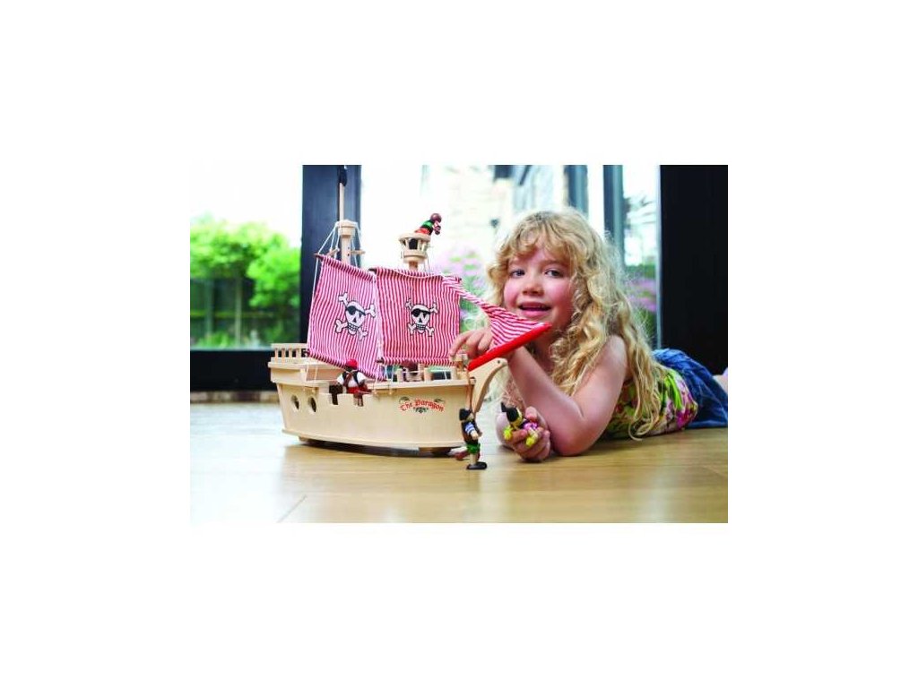 Fantastická dřevěná pirátská loď je hračka, která zaručuje skvělý zážitek a vzrušující zábavu pro vaše dítě. Sada obsahuje figurky celé posádky pirátů spolu s kapitánem, pokladnicí, zbraní a sudů. Loď vyžaduje jednoduchou montáž, téměř okamžitě se s lodí dostanete na dobrodružství. Ze spodní části je loď vybavena kolečky, díky kterým ji můžete posunovat "plout" s lehkostí na každém povrchu. Hlavní vlastnosti: loď i s kompletní posádkoujednoduchá montážspodní kolečka pro lepší manipulacisoučástí balení je 6 ks postaviček pirátů