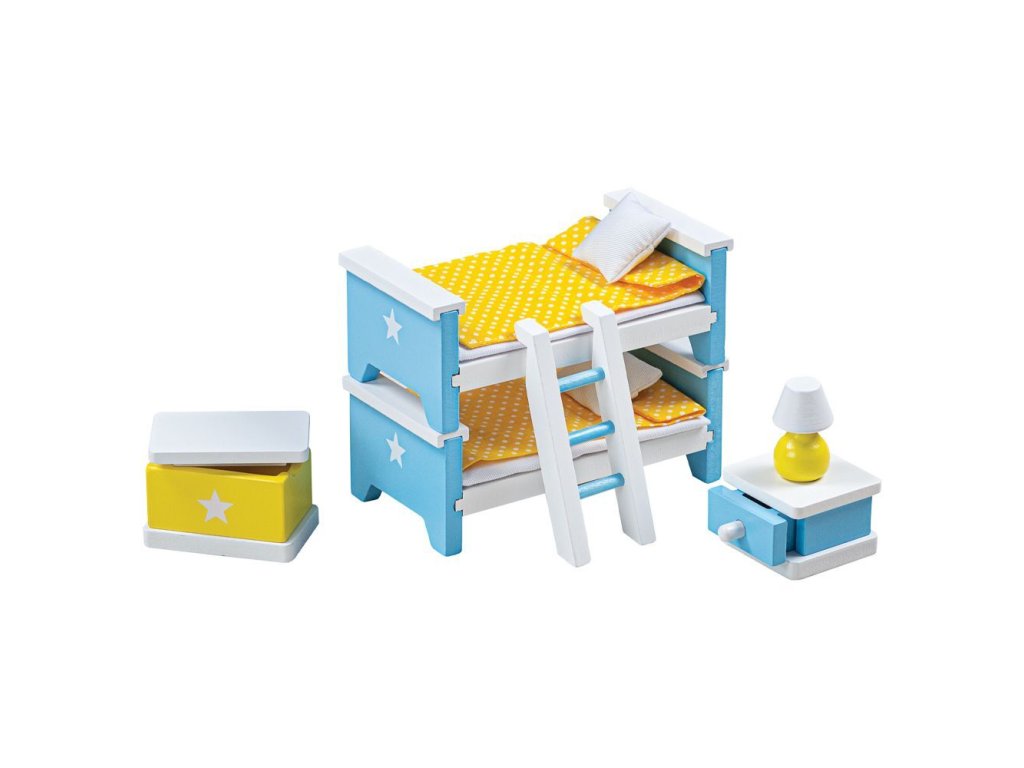 Krásný nábytek z bukového dřeva se bude hodit do každého domečku pro panenky, který má prostě vše, co budou děti potřebovat k vytvoření pokojíčku pro panenky, které jsou unavené po celém dni plném her. Set o osmi kusech zahrnuje dvě postele, které se mohou složit do poschoďovky, žebřík, noční stolek s lampičkou a malý domeček pro panenky, který připomíná domeček pro panenky Tidlingtion (T0220) a také truhlu s hračkami a jeden doplněk. Postele mají také své lůžkoviny, které panenku udrží přes noc v teple! Krásně detailní set se bude hodit do domečku pro panenky Tidlington a jiné domečky standardní velikosti. Podporuje kreativní a představivou hru. Vyrobeno z kvalitních materiálů z odpovědných zdrojů. Odpovídá evropské bezpečnostní normě. Skládá se z 8 dílů. Hlavní vlastnosti: 8 ks včetně lůžkovinpodporuje kreativitu a představivost