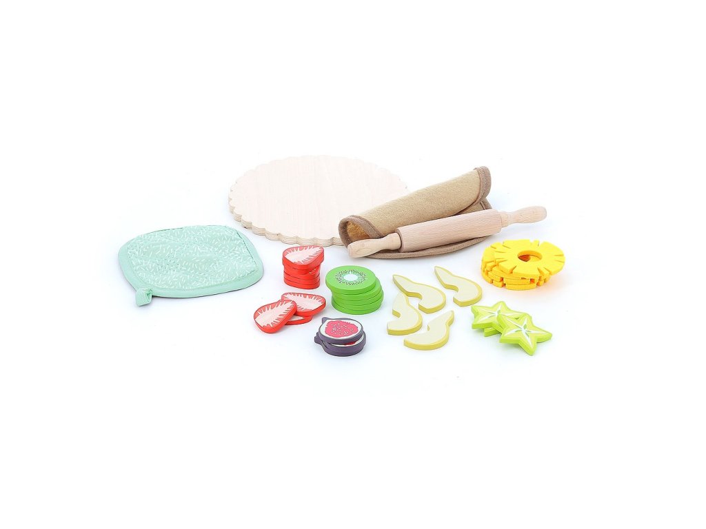 Upečte si koláč s ovocem - jahoda, kiwi, hruška, ananas atd... Jako správný cukrář si Vaše dítě nejdříve vyválí těsto, vloží ho do formy a naaranžuje ovoce podle své chuti a kreativity. Hmm.. i plyšáci a panenky si přijdou na své. Hlavní vlastnosti: inspiruje ke kreativní a představivé hřevhodné do každé kuchyňkykreativní hračka pro gurmány