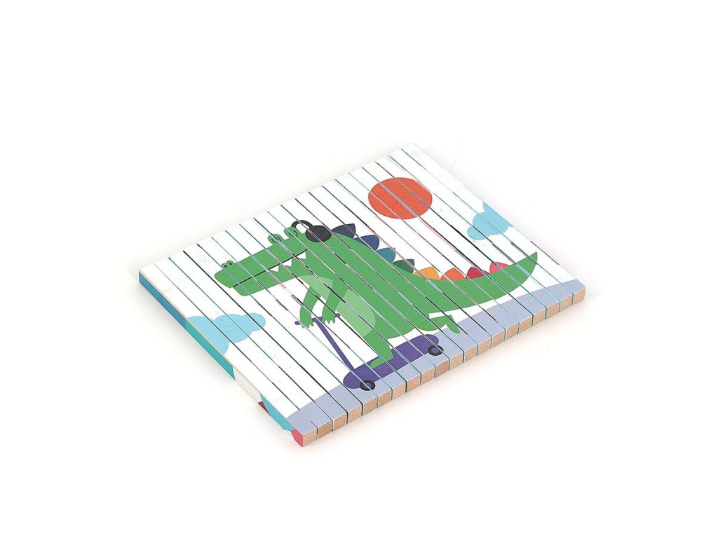 Nakloním se doleva a vidím pandu červenou! Nakloním se doprava a objeví se lední medvěd! Celkem čtyři různé ilustrace se ukrývají v jedné chytré skládačce – panda červená, lední medvěd, krokodýl a panda. Tato 4D skládačka s motivem zvířátek, které ilustroval známý umělec Andy Westface, nabízí dětem od 5 let zcela jedinečný herní zážitek. Díky dřevěným tyčinkám, které jsou potištěny ze čtyř stran, se podle úhlu pohledu objevují různé obrázky. Tento chytrý a nápaditý design nejen zaujme, ale také pomáhá dítěti rozvíjet logické myšlení a jemnou motoriku. Součástí je i vizuální značka, která dětem pomáhá skládačku správně složit. Skvělá volba pro zvídavé děti, které se rády učí hrou! Zasouváním tyčinek do rámečku si děti zlepšují koordinaci ruka-oko, přesnost pohybu i sílu v prstech. Tyto dovednosti jsou důležité nejen pro hry, ale i pro každodenní činnosti, jako je psaní nebo kreslení. Každý krok při skládání vyžaduje pozornost a pečlivost, takže se dítě učí trpělivosti a soustředění. Díky poetickému a barevnému stylu ilustrací Andyho Westface děti objevují nejen zvířátka, ale i nové příběhy. Mohou si samy vymýšlet scénky a povídky podle toho, co vidí. Hra tak rozvíjí nejen logické myšlení, ale i jazyk, slovní zásobu a představivost. Skládačka je proto skvělou kombinací vzdělávání a zábavy a je ideální pro smysluplné trávení času s rodiči i kamarády. Obsah balení 1 dřevěný stojánek20 dřevěných tyčinek potištěných z každé ze 4 stran Hlavní vlastnosti originální design ve 4 rozměrechjedinečný koncept podporující logické myšlenírozvíjí jemnou motoriku a koordinaci ruka-okovizuální nápověda pro snadnější skládání puzzletrénuje koncentraci a schopnosti řešit problémypodporuje představivostvhodné pro hru s rodinou nebo přátelipůsobivá dekoracedesign Andy Westfacevhodné pro děti od 5 let Andy Westface je ilustrátor žijící a působící v Hongkongu. Svou prací se snaží zprostředkovat silné pocity a jasné myšlenky za pomoci jednoduchých tvarů, kompozic i barevnosti. Typickými prvky jeho děl jsou zvířata a duha, které si oblíbil pro jejich čistotu, upřímnost a schopnost vzbuzovat radost.