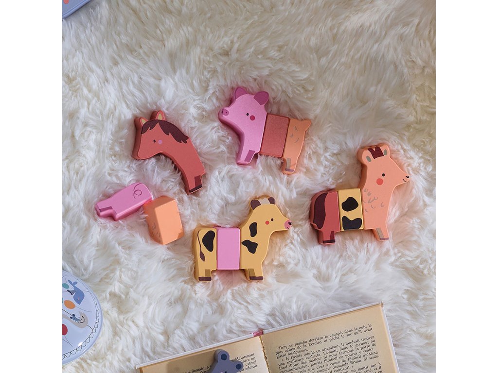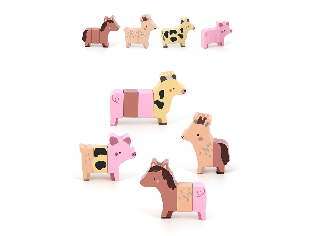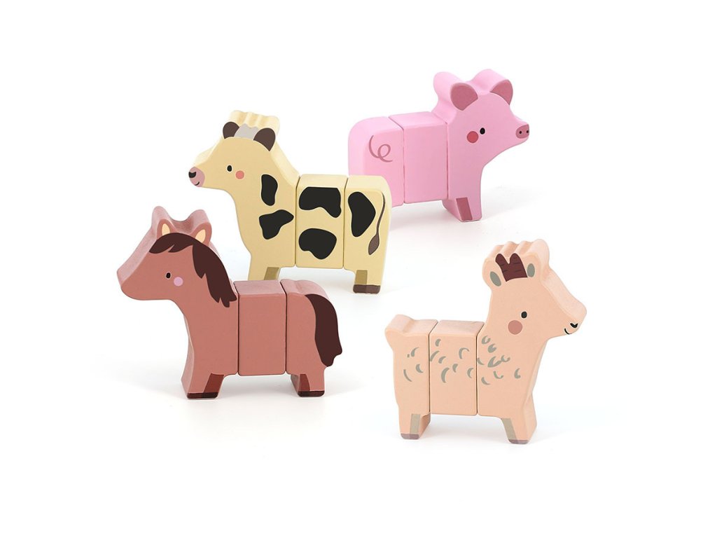 Jak by vypadal koníček zkřížený s prasátkem nebo koza s koníkem? Zábavná dřevěná magnetická hračka probouzí dětskou fantazii i jemnou motoriku. Každé zvířátko se skládá ze 3 dílků, které jsou vzájemně kombinovatelné. Děti si tak mohou vytvářet zvířátka, ať už podle skutečnosti nebo podle vlastní fantazie, mohou vymýšlet příběhy a seznamovat se se světem zvířat zábavným a hravým způsobem. Hračka je navržená tak, aby podporovala svobodnou hru, rozvoj tvořivosti a radost z objevování. Při manipulaci s magnetickými částmi si děti procvičují koordinaci ruka-oko, jemnou motoriku i logické myšlení. Díky dřevěnému provedení je navíc hračka příjemná na dotek a odolná. Je to ideální společník pro dlouhé hodiny tvořivé zábavy. Zvířátka jsou ilustrována výtvarnicí Sarah Betz, která hračce vtiskla poetický a něžný styl inspirovaný přírodou. Její kresby dodávají hračce kouzlo, které si získá srdce dětí i rodičů. Hlavní vlastnosti: 12 dílků, 4 zvířátka – kravička, koníček, prasátko, kozainspirováno Montessori pedagogikoupodporuje fantaziirozvíjí kreativitutrénuje jemnou motoriku a koordinaci ruka-okorozvíjí schopnost analyzování, třídění a skládánívhodné pro děti od 2 letilustrace Sarah Betz