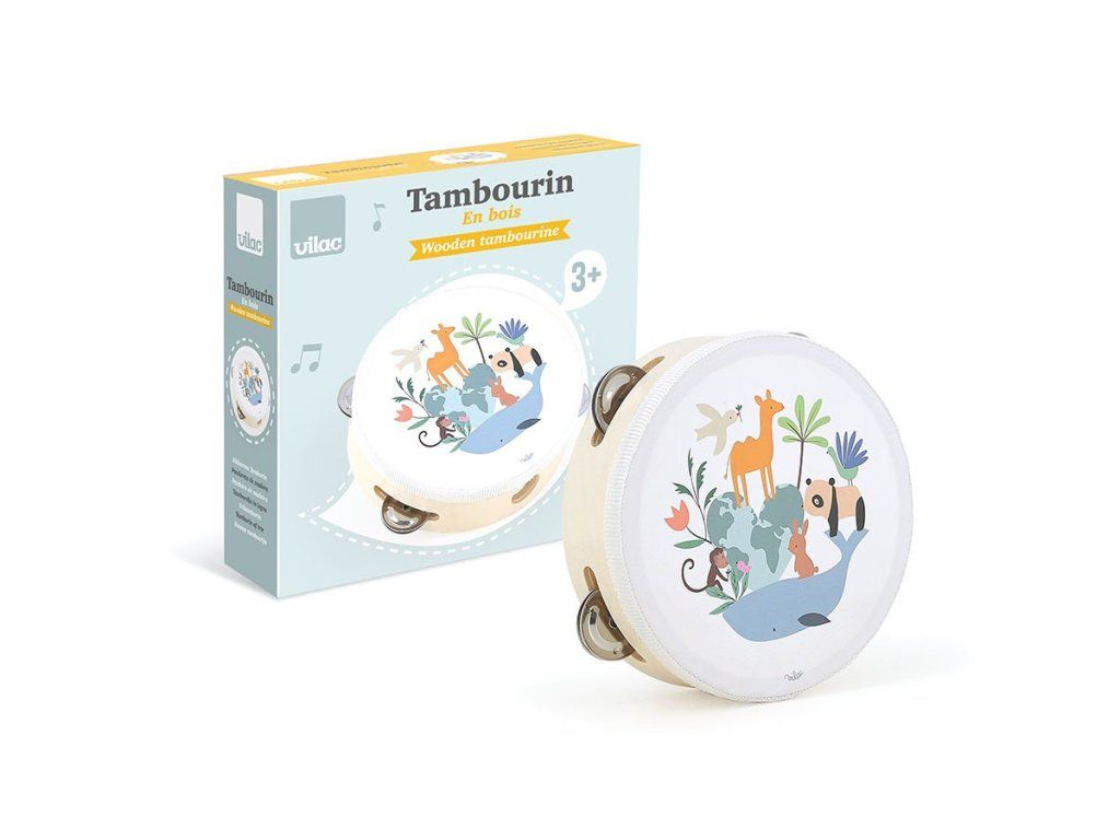Vilac Dřevěná tamburína Zvířata světa Sarah Betz