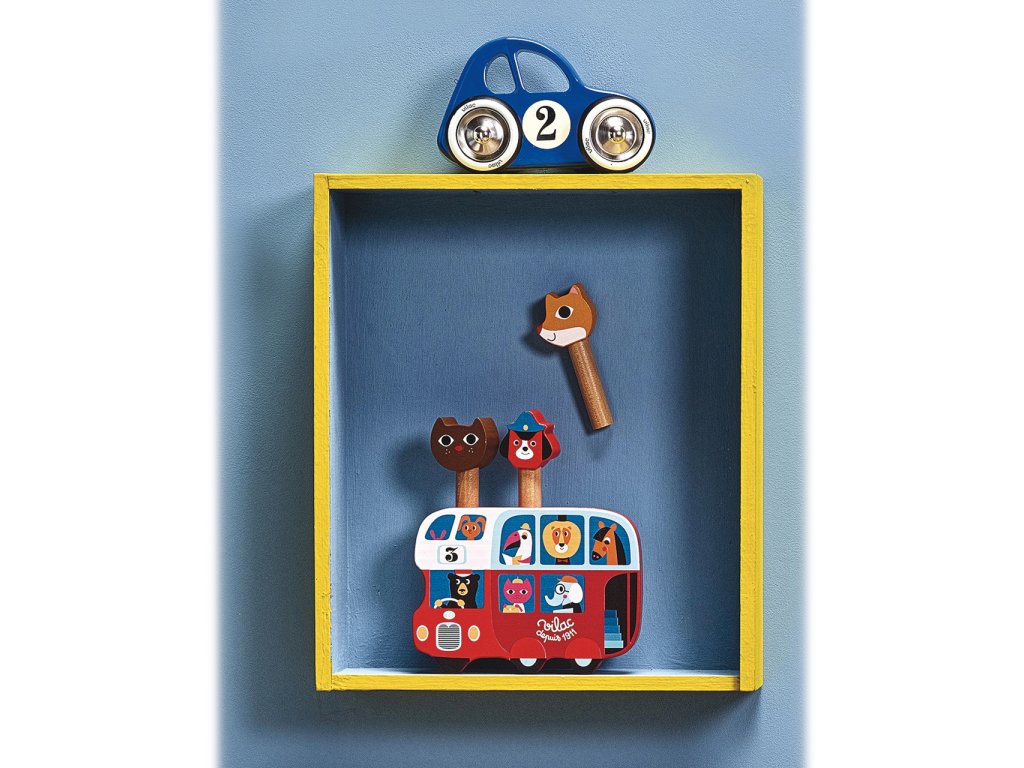 Krásná dřevěná vystřelovací hra s ilustracemi umělkyně Ingely P. Arrhenius. Z autobusu vyskakují 3 postavičky – liška, pejsek a kočička. Hlavní vlastnosti: design Ingely P. Arrheniusvyrobeno ekologicky, šetrně k životnímu prostředí Švédská umělkyně Ingela Peterson Arrhenius se narodila v roce 1967. Umění a design měly vždy místo v jejím životě a než začala její kariéra ilustrátorky, Ingela pracovala jako umělecká vedoucí ve Stockholmu. Poté studovala reklamní a grafický design na umělecké škole také ve Stockholmu. V roce 1992 začala podnikat jako ilustrátorka na volné noze a pracovala mezinárodně napříč reklamou, designem, nakladatelstvím… V minulosti vytvářela tiskové vzory pro tkaniny, tapety, papírnictví, také pracovala na obalech, produktovém designu, bytových doplňcích a hračkách. Její plakáty a designové hračky najdete po celém světě. Má vášeň pro retro styl, což je jasně vidět na jejich dílech a také v jejím nadšení pro typografii a barvy. Nyní žije ve Stockholmu s manželem a dvěma syny.