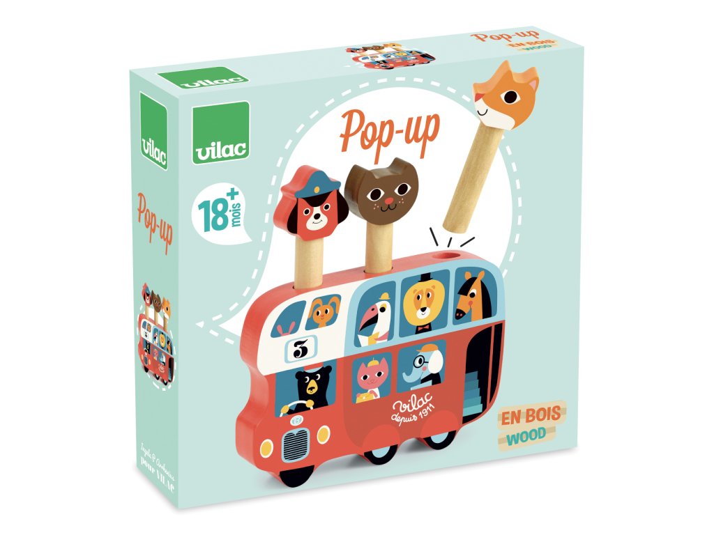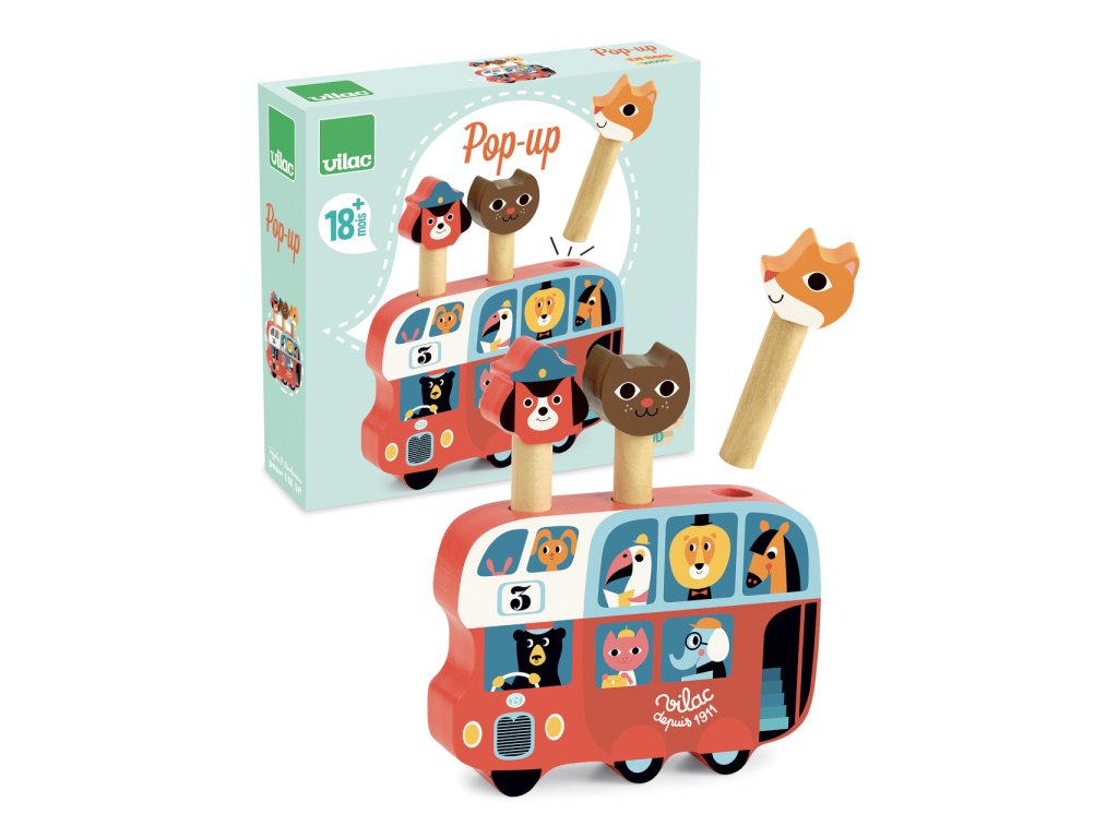 Vilac Dřevěná vystřelovací hra Autobus se zvířátky