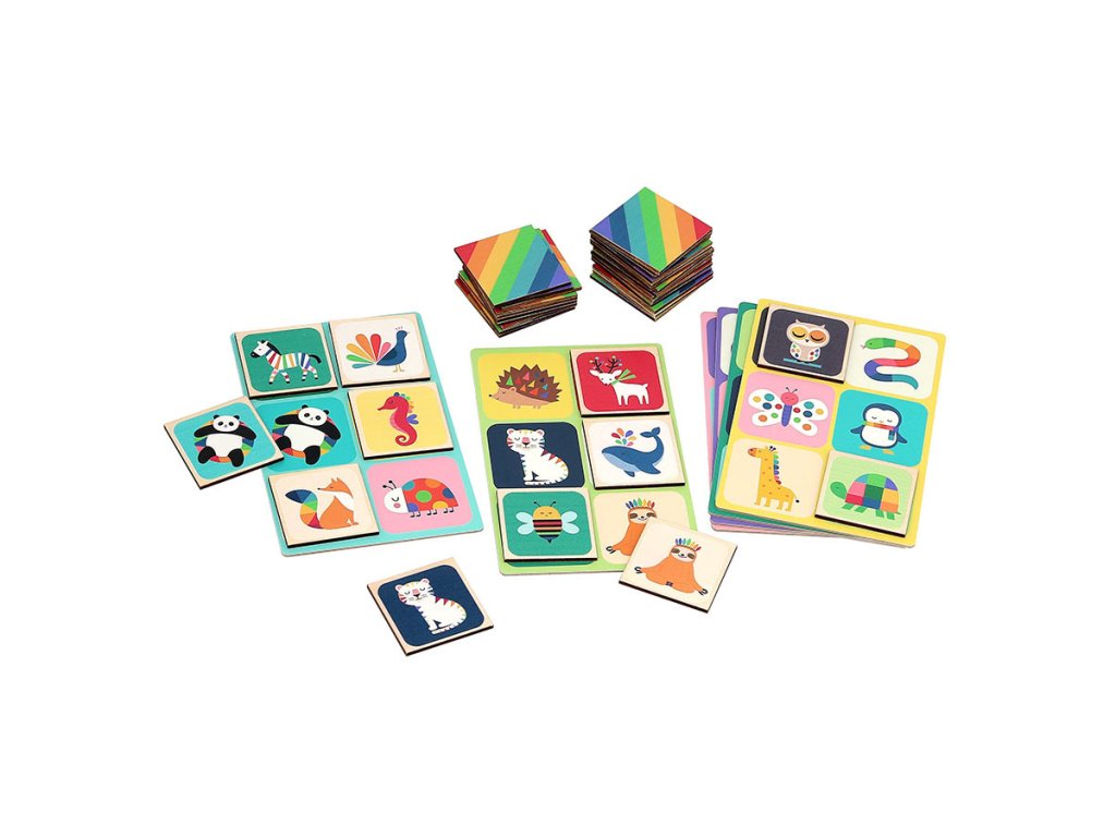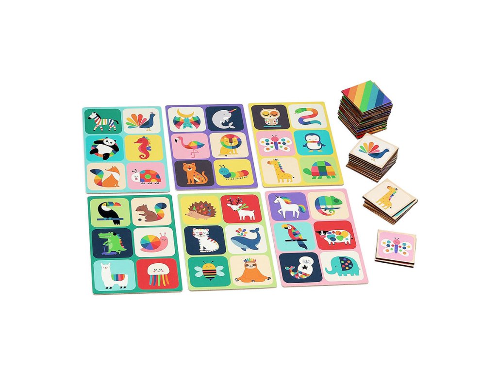 Objevte zvířecí bingo s krásnými ilustracemi od Andyho Westface. Jedná se o originální hru, která umožní nejmenším rozvíjet svou slovní zásobu a zároveň si s ní užijí mnoho zábavy. Kdo dokáže jako první doplnit svou loterijní kartu? Kdo má žirafu? Tučňáka? A pandu?Hra obsahuje: 6 kartonových bingo karet, 36 dřevěných dílků, textilní pytlík. Zvířecí bingo je zábavná stolní hra určená pro děti od 2 let. Děti baví a zároveň podporuje v rozpoznávání zvířat.Hlavní vlastnosti: rozvíjí komunikační a smyslové dovednostirozvoj pozorovacího smysluodolná dřevěná hračkarodinná hrajedinečný design Andy Westface je ilustrátor žijící a působící v Hongkongu. Svou prací se snaží zprostředkovat silné pocity a jasné myšlenky za pomoci jednoduchých tvarů, kompozic i barevnosti. Typickými prvky jeho děl jsou zvířata a duha, které si oblíbil pro jejich čistotu, upřímnost a schopnost vzbuzovat radost.