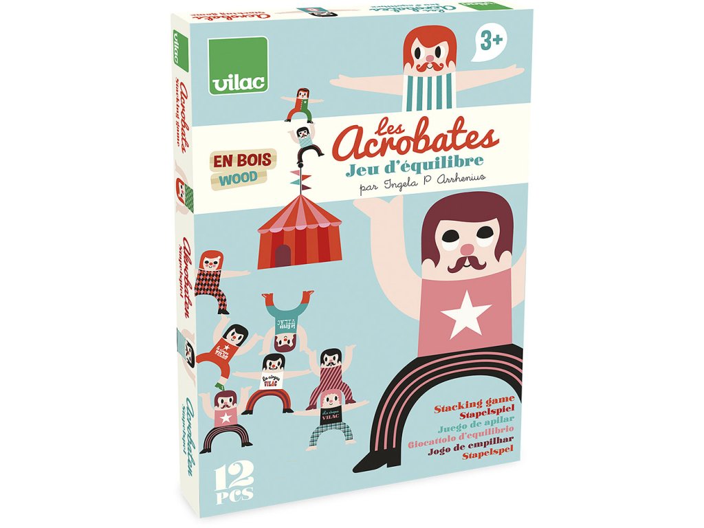 Dvanáct dřevěných figurek akrobatů, s kterými si můžete zahrát balanční hru. Jednoduše skládejte postavičky různě na sebe. Ten, komu akrobati spadnou, prohrál. Ilustrováno Ingelou P. Arrhenius. Hlavní vlastnosti: trénuje trpělivost a logické myšlenídesign Ingela P. Arrhenius Švédská umělkyně Ingela Peterson Arrhenius se narodila v roce 1967. Umění a design měly vždy místo v jejím životě a než začala její kariéra ilustrátorky, Ingela pracovala jako umělecká vedoucí ve Stockholmu. Poté studovala reklamní a grafický design na umělecké škole také ve Stockholmu. V roce 1992 začala podnikat jako ilustrátorka na volné noze a pracovala mezinárodně napříč reklamou, designem, nakladatelstvím… V minulosti vytvářela tiskové vzory pro tkaniny, tapety, papírnictví, také pracovala na obalech, produktovém designu, bytových doplňcích a hračkách. Její plakáty a designové hračky najdete po celém světě. Má vášeň pro retro styl, což je jasně vidět na jejich dílech a také v jejím nadšení pro typografii a barvy. Nyní žije ve Stockholmu s manželem a dvěma syny.
